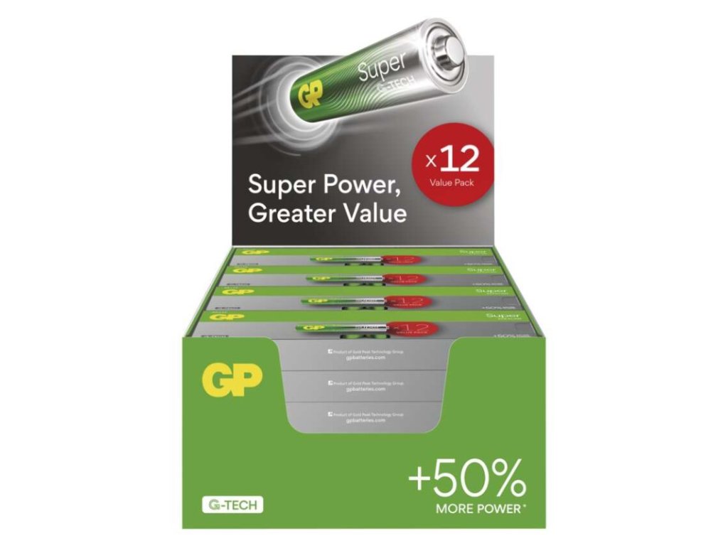 Alkalická baterie GP Super AAA (LR03), display box, balení 288ks