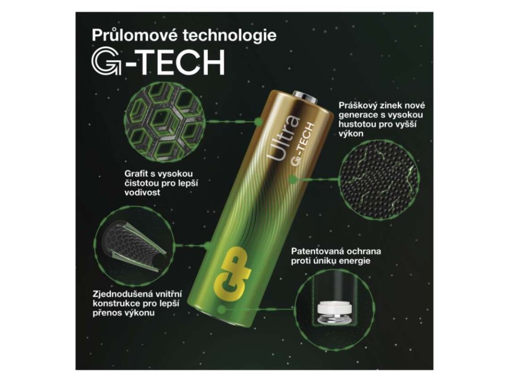 Alkalická baterie GP Ultra AAA (LR03), 4 ks