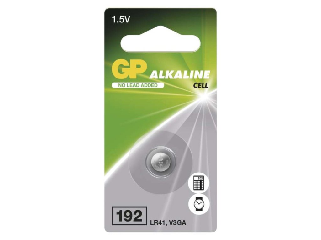 chemické složení: alkalické|hmotnost: 0,5 g|kapacita: 24 mAh (při zátěži 30 kOhm)|kategorie/řada: Alkaline cell|max. skladovatelnost: 3 roky|možnost nabíjení: ne|napětí: 1,5 V|počet nabíjecích cyklů: nenabíjecí|prodejní obal: 1 ks, blistr|provozní teplota: 0 °C až +45 °C|rozměr: 7,9 × 3,6 mm|typ: GP 192F (LR41, V3GA)|velikost baterie: neuvádí se|značka: GPDoplňkové parametry