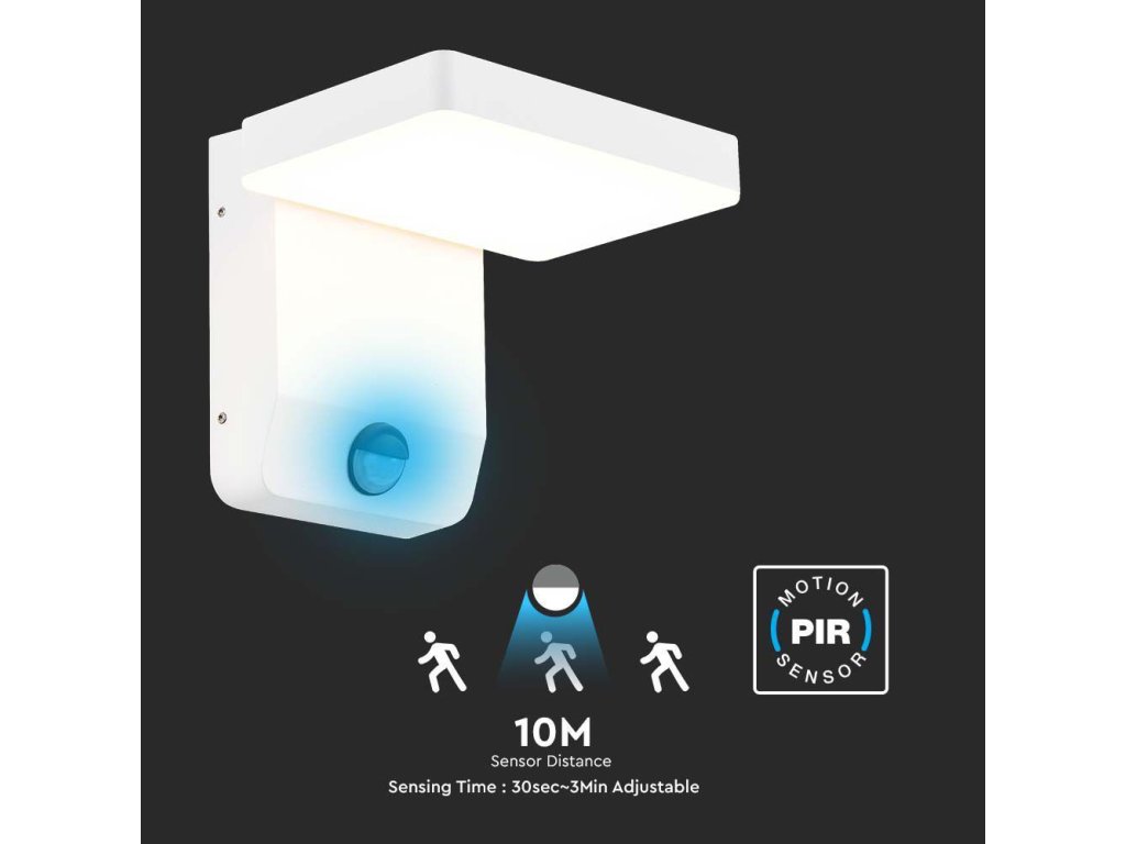 Součástí svítidla je pohybový senzor s PIR čidlem. Možnost nastavení snímané intenzity světla, doby svícení a směru snímání. Senzor snímá pohyb či světlo ve vzdálenosti až 10 metrů. Doba svícení je nastavitelná od 30 sekund do 3 minut.