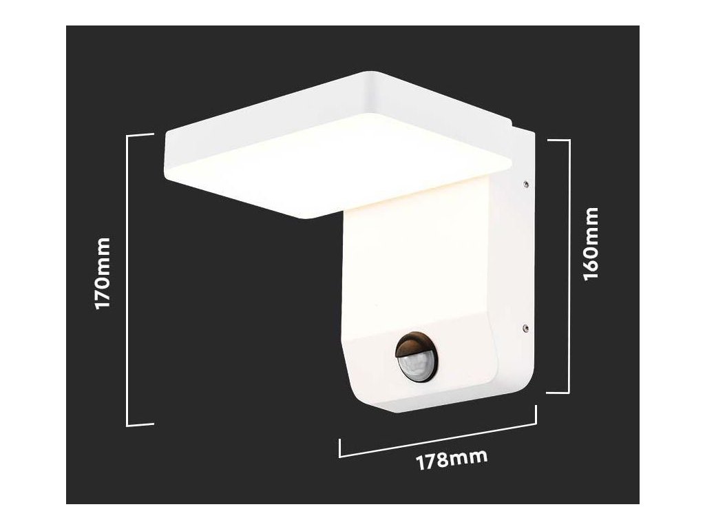 Bílé fasádní LED svítidlo čtvercové s pohybovým čidlem 17W IP65