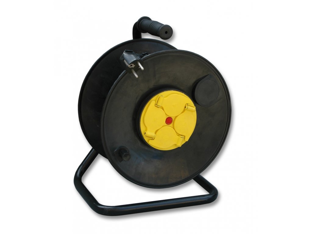 Černý prodlužovací kabel na navinovacím bubnu pro vnitřní i vnější použití se zvýšenou ochranou IP. Disponuje 4 zásuvkami, tepelnou pojistkou, dětskými clonkami a kabelem s průřezem 1,5 mm2. Zásuvky a zástrčka jsou vyrobeny z plastu, izolace je gumová.Doplňkové parametry