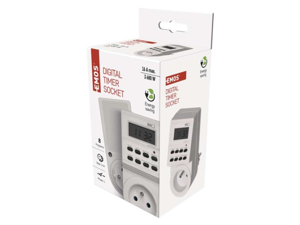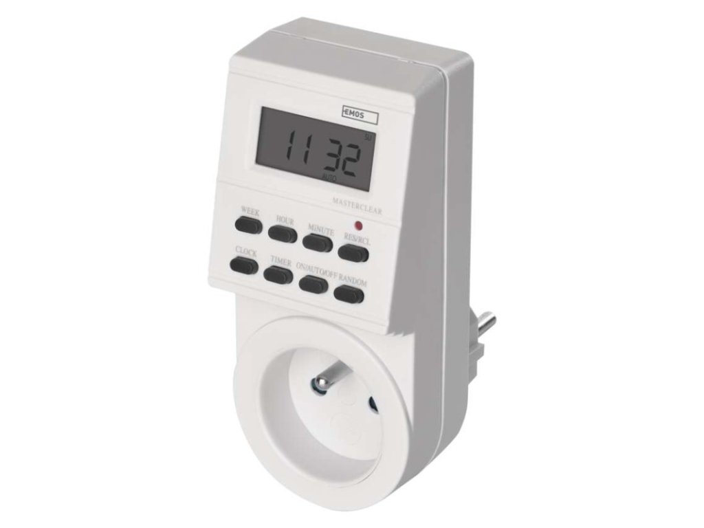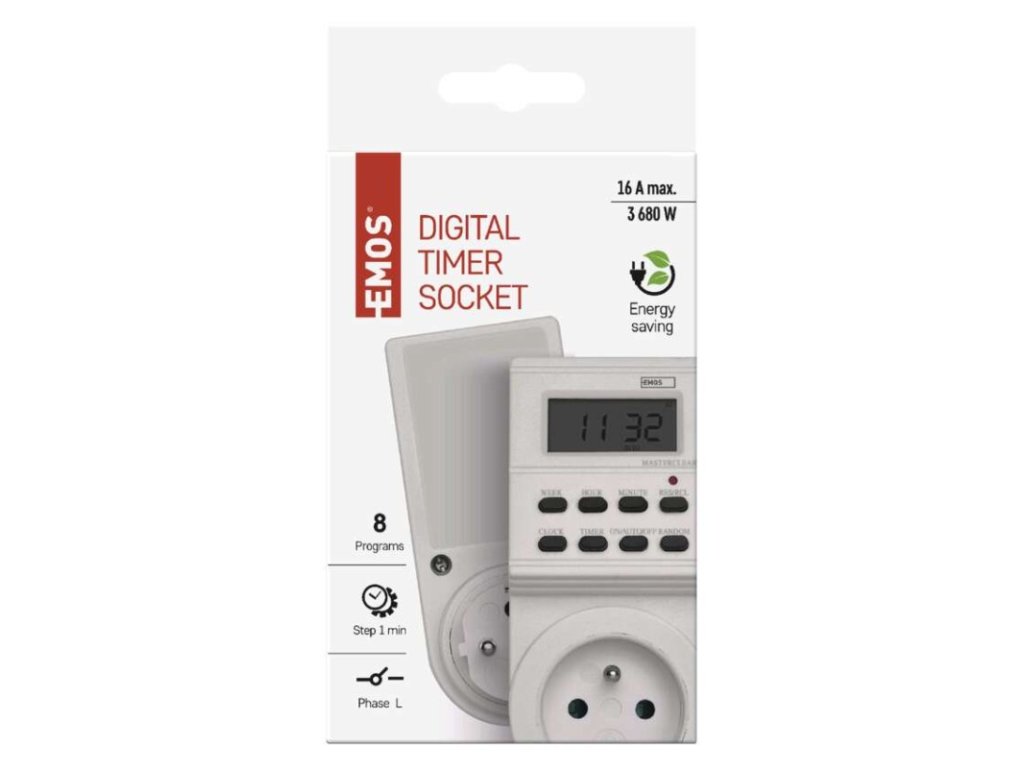 dětské clonky: ano|druh: digitální|funkce odpočítávání countdown: ne|funkce změny letní/zimní čas: ano|krytí: IP20|max. zátěž: 3 680 W|minimální doba sepnutí: 1 minuta|možnost ručního zapnutí: ano|napětí/proud: 230 V~/16 A max.|počet programů: 8|počet spínání za den: 8|prodejní obal: 1 ks, krabice|rozměr: 57 × 130 × 86 mm|spíná: fázový vodič|venkovní použití: ne|záložní akumulátor: 1,2 V; 40 mAh; NiMH (knoflíková baterie 1× 1,2 V)Doplňkové parametry