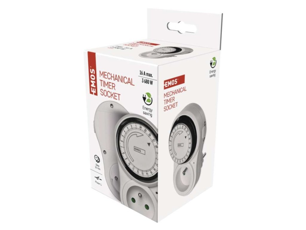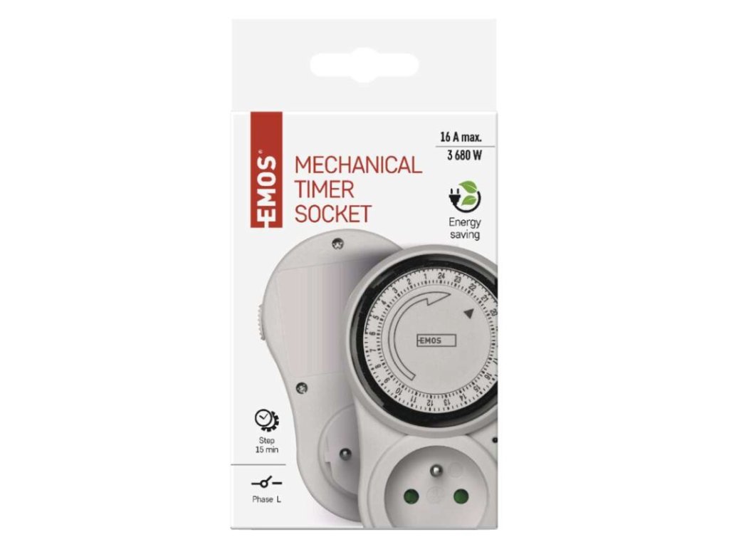 dětské clonky: ano|druh: mechanická|funkce odpočítávání countdown: ne|funkce změny letní/zimní čas: neuvádí se|krytí: IP20|max. zátěž: 3 680 W|minimální doba sepnutí: 15 minut|možnost ručního zapnutí: ano|napětí/proud: 230 V~/16 A max.|počet programů: neuvádí se|počet spínání za den: 96|prodejní obal: 1 ks, krabice|rozměr: 75 × 123 × 75 mm|spíná: fázový vodič|venkovní použití: ne|záložní akumulátor: neuvádí seDoplňkové parametry