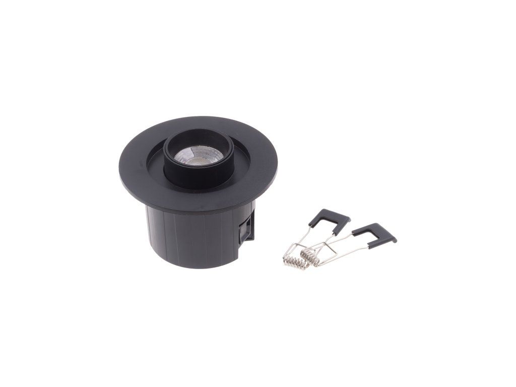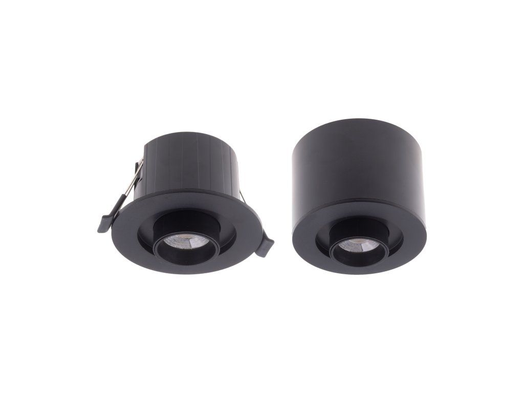 Stropní bodové nebo podhledové CCT LED svítidlo v černé barvě s krytím IP44 vhodně pro instalaci na strop v interiérech jako jsou kuchyně, obývací pokoje, koupelny a podobně, ale také pro osvětlení venkovních prostor. Svítidlo můžete také nainstalovat do podhledů pomocí pružin v balení. Světlo má index oslnění UGR<19. Na svítidle je umístěn přepínač pro nastavení teploty světla (CCT), kdy můžete vybírat mezi 3 barvami světla: 2700K teplá bílá 4000K denní bílá 6500K studená bílá O barvě světla toho LED svítidla se tedy můžete rozhodnout až během instalace. Svítidlo je složené ze dvou částí (držák a tělo svítidla + pružinky pro instalaci do podhledů). LED svítidlo ALIMO můžete nainstalovat dvěma způsoby: Jako přisazené na strop či stěnu. Jako zápustné (například do sádrokartonových podhledů) Můžete také jednoduše nastavit směr světla pomocí nastavitelné hlavy. Hlavu světla lze ze svítidla vysunout a kužel světla nasměrovat dle potřeby. Specifikace LED svítidla Barva svítidla Černá Materiál svítidla Plast Vstupní napětí 220-240V AC Příkon 6W Barva světla CCT (3 varianty bílé barvy) Teplota světla 2700-6500K Světelný tok 650lm CRI >80 Index oslnění UGR<19 Úhel svitu 30° Krytí IP44 Životnost 25000h Stmívatelnost Ne Rozměry 77,5x92mm (v/p)Doplňkové parametry