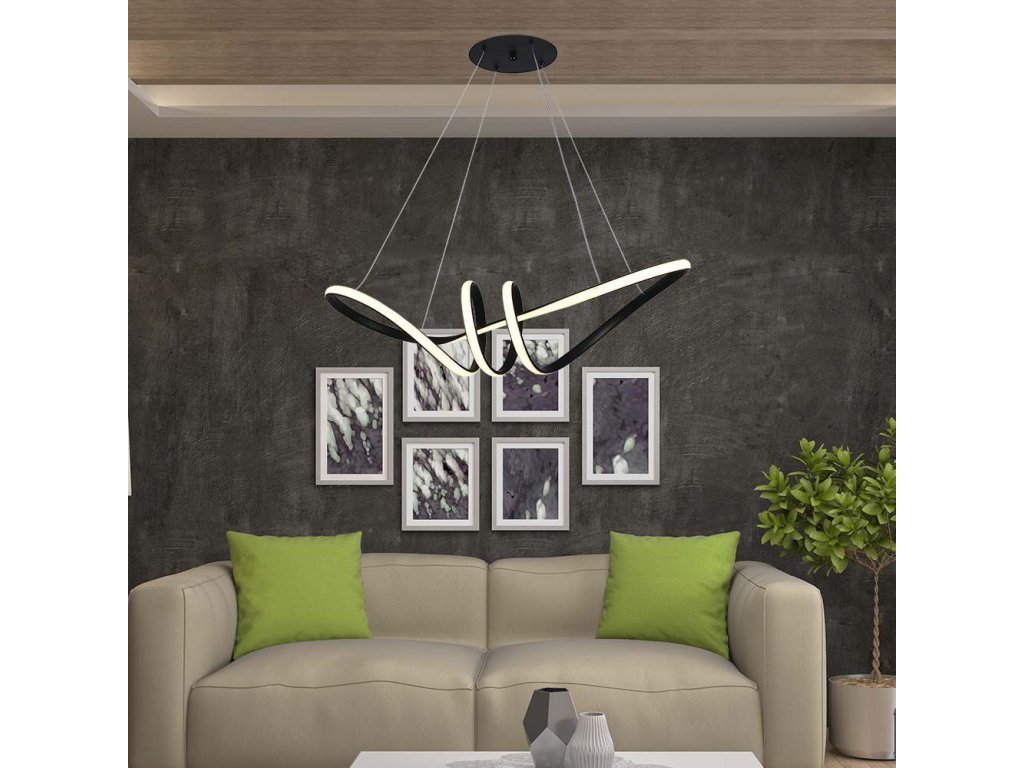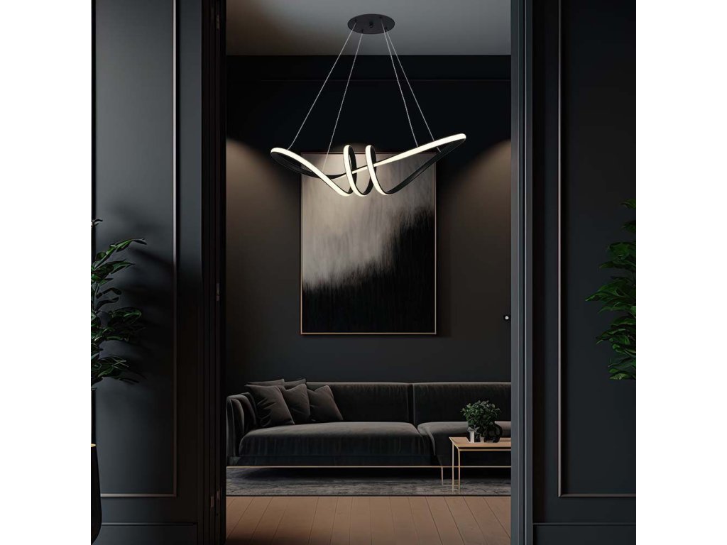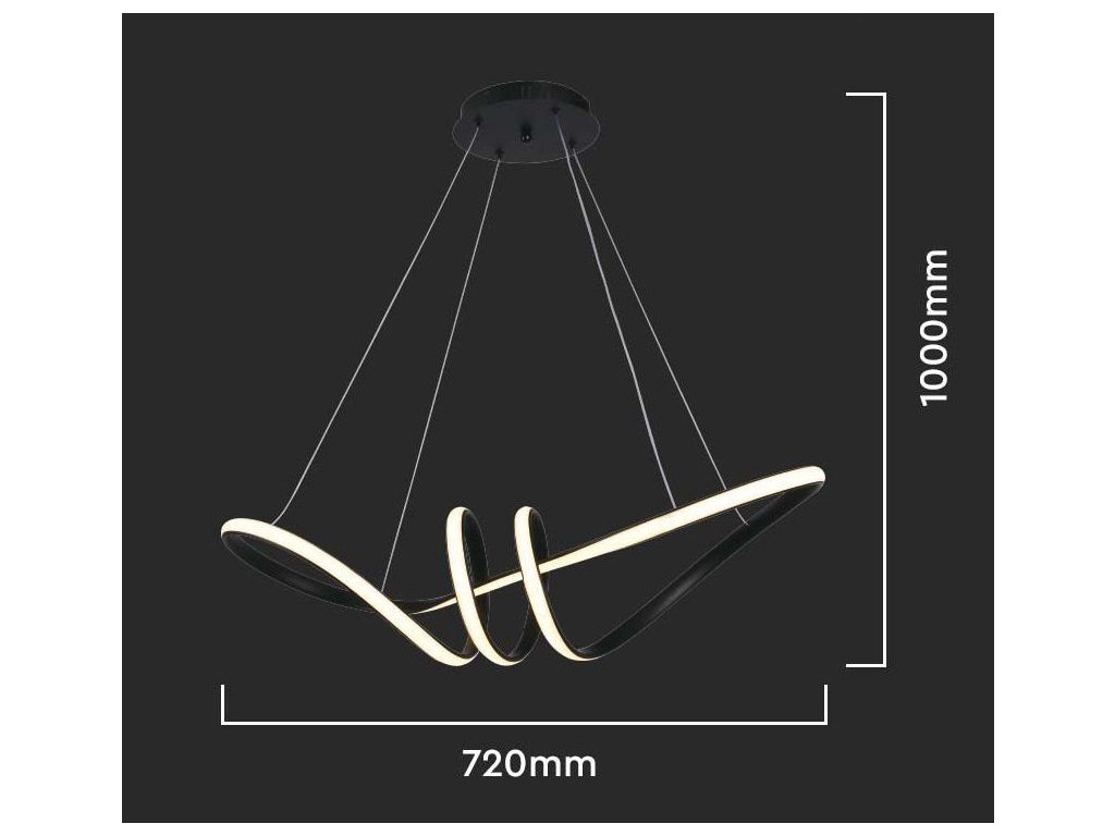 Černé designové stropní LED svítidlo o výkonu 24W. Nahrazuje starší svítidla pro žárovky s paticí E27. Průměr tohoto LED svítidla je 720mm a celková výška je 1000mm. Jedná se o svítidlo, které je svým designem vhodné pro hotely, rezidence, restaurace a komerční prostory. Svítidlo je vyrobené z kovu v černé barvě zavěšené na ocelových lankách. Jednotlivé diody, které jsou umístěny pod mléčnými plastovými proužky, neoslňují a ve svítidle nejsou vidět. Jsou tedy nerozeznatelné od běžného svítidla. Díky nastavitelné výšce je možné svítidlo přizpůsobit různým typům interiéru.