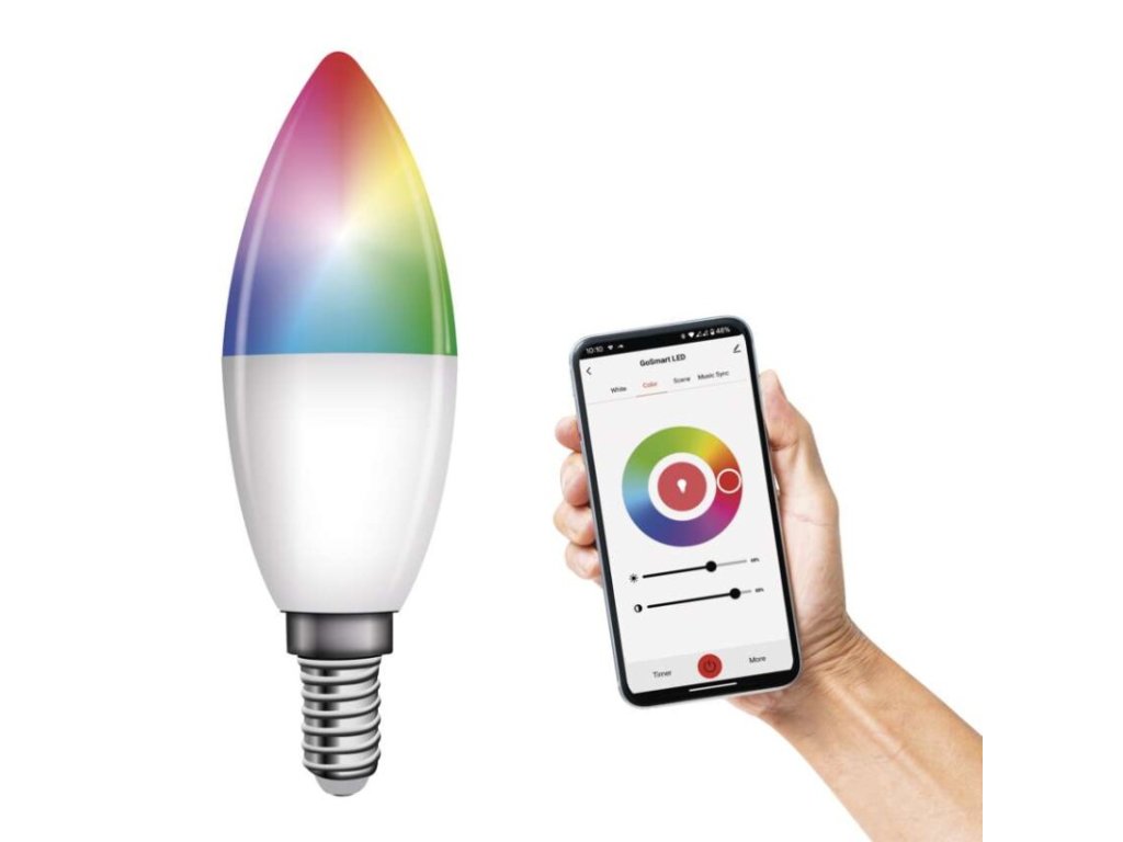 Chytrá LED žárovka GoSmart svíčka / E14 / 4,8 W (40 W) / 470lm / RGB / stmívatelná / WiFi