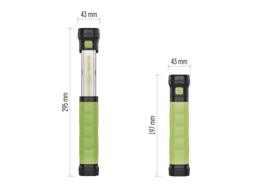 barva: zeleno-černá|baterie součástí balení: ano|doba nabíjení: 3,5 h|doba svícení: 7–16 h|doba svícení detail: COB LED 100 % – 7 h, LED 100 % – 16 h|dosvit: COB LED 100 % – 25 m, LED 100 % – 100 m|fokus: ne|hmotnost: 190 g|LED indikace nabíjení: ano|LED indikace stavu akumulátoru: ne|materiál: ABS plast|maximální dosvit: 100 m|maximální světelný tok: 450 lm|nabíjecí: ano|napájení: Li-Ion|nárazuvzdornost: ano|počet režimů svícení: 2|příslušenství: USB kabel|prodejní obal: 1 ks, krabice|režimy svícení: COB LED 100 %, LED 100 %|rozměr: 43 × 43 × 197 mm|speciální funkce: funkce ochrany baterie|světelný tok: COB LED 100 % – 450 lm, LED 100 % – 120 lm|typ baterie: 2 000 mAh/3,7 V|typ napájecího konektoru: USB C|voděodolnost: ano (IP44)|vybavení: magnet, hák|záruční doba: 2 roky|zdroj světla: COB LED + LED|značka: EMOSDoplňkové parametry