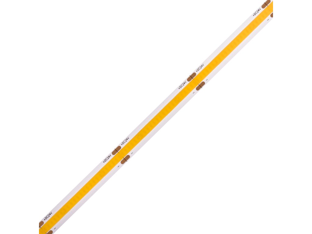 Řada LED pásku COB je speciální řada LED pásků, kde jsou LED čipy zalité vrstvou luminoforu, které způsobuje stejnoměrné svícení LED pásku bez viditelnosti jednotlivých diod. LED pásek COB tedy můžete použít například i u instalací, kde není možné použít dostatečné vhodný profil s mléčným krytem, který standardně světlo z LED pásku může sjednotit do jedné linie. Zalití luminoforem také zvětšuje úhel svitu COB LED pásků na 180°. Tento model LED pásku má příkon 15W na metr a můžete ho použít jako osvětlení pro dekorativní a reklamní účely, v šatnách, na schodištích, kuchyňských linkách apod. Specifikace LED pásku Barevná varianta Teplá bílá Denní bílá Studená bílá Teplota 3000K 4000K 6500K Světelný tok 1670lm/m 1790lm/m 1870lm/m CRI >80 Vstupní napětí 24V DC Příkon 15W/m Počet LED 528/m Úhel svitu 180° LED čip Sanan Provozní teplota -15°C až max. 60°C Životnost Až 50 000h Šířka pásku 8mm Výška pásku 1,6mm Návin na kotouči 5m Krytí IP20 Samolepící páska ANO, 3M 300LSE Dělitelnost Každých 4,545cm Maximální délka zapojení 5-10m Záruka 3 roky Stmívatelné ANO K LED pásku si vyberte také zdroje, profily a stmívače. LED pásek lze zapojit z jedné strany v maximálně v délce, která je uvedená v tabulce. Pokud zapojíte pásek ve větší délce, bude na konci pásku docházet k zásadním úbytkům svítivosti. Pro delší zapojení je potřeba zapojit pásek z obou stran. Co je teplota světla a jak ji správně vybrat? To se dozvíte zde.Doplňkové parametry