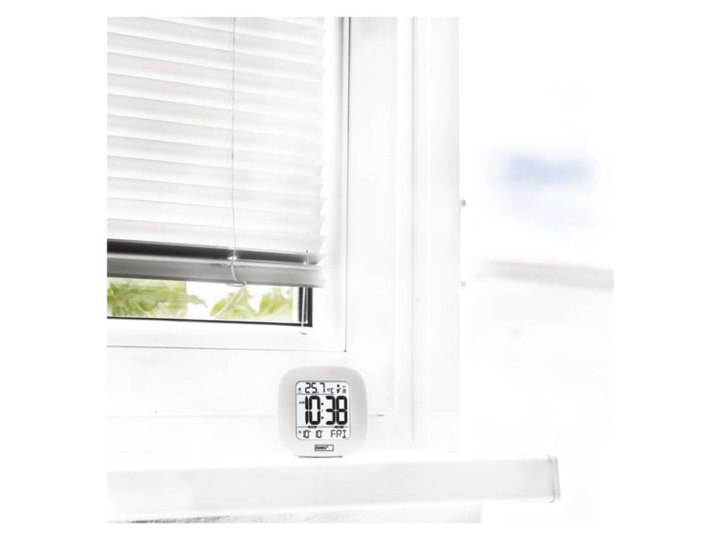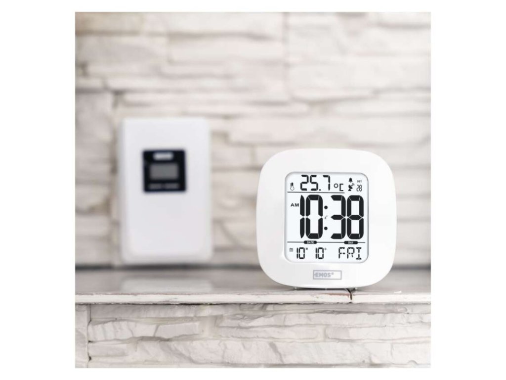 12/24 formát času: ano|barevný displej (black mask) podsvícený: ne|budík: ano|časová pásma: ano|datum: ano|dosah ve volném prostoru: až 30 m|drátová sonda k čidlu: ne|funkce stopky: ne|hodiny: řízené DCF signálem|kalendář: ne|LED podsvícení displeje: ano|magnet na připevnění: ne|min. a max. teplota: ano|možné další čidlo: 1 (E05018)|možnost nastavení jednotky teploty: °C/°F|možnost pověšení na zeď: ne|napájení čidla: 2× 1,5 V AAA (nejsou součástí balení)|napájení stanice: 2× 1,5 V AAA (nejsou součástí balení)|odpočet času max. od: ne|opakované buzení: ano|paměť poslední hodnoty: ne|přenosová frekvence: 433 MHz|prodejní obal: 1 ks, krabička|provedení teploměru: bezdrátový|rozměr čidla: 25 × 60 × 95 mm|rozměr hlavní jednotky: 30 × 78 × 78 mm|síťový adaptér: ne|teplotní index: ne|teplotní výstraha: ne|trend teploty: ne|trend tlaku: ne|trvalé podsvícení: ne|velikost displeje: 46 × 49 mm|venkovní teplota: -20 °C až +60 °C, rozlišení 0,1 °C|venkovní vlhkost: ne|vnitřní teplota: 0 °C až +50 °C, rozlišení 0,1 °C|vnitřní vlhkost: neDoplňkové parametry