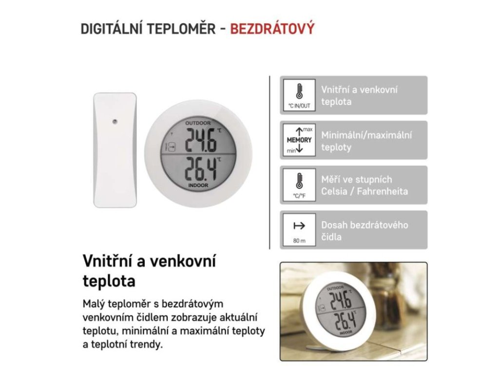 | Provedení teploměru: | bezdrátový |