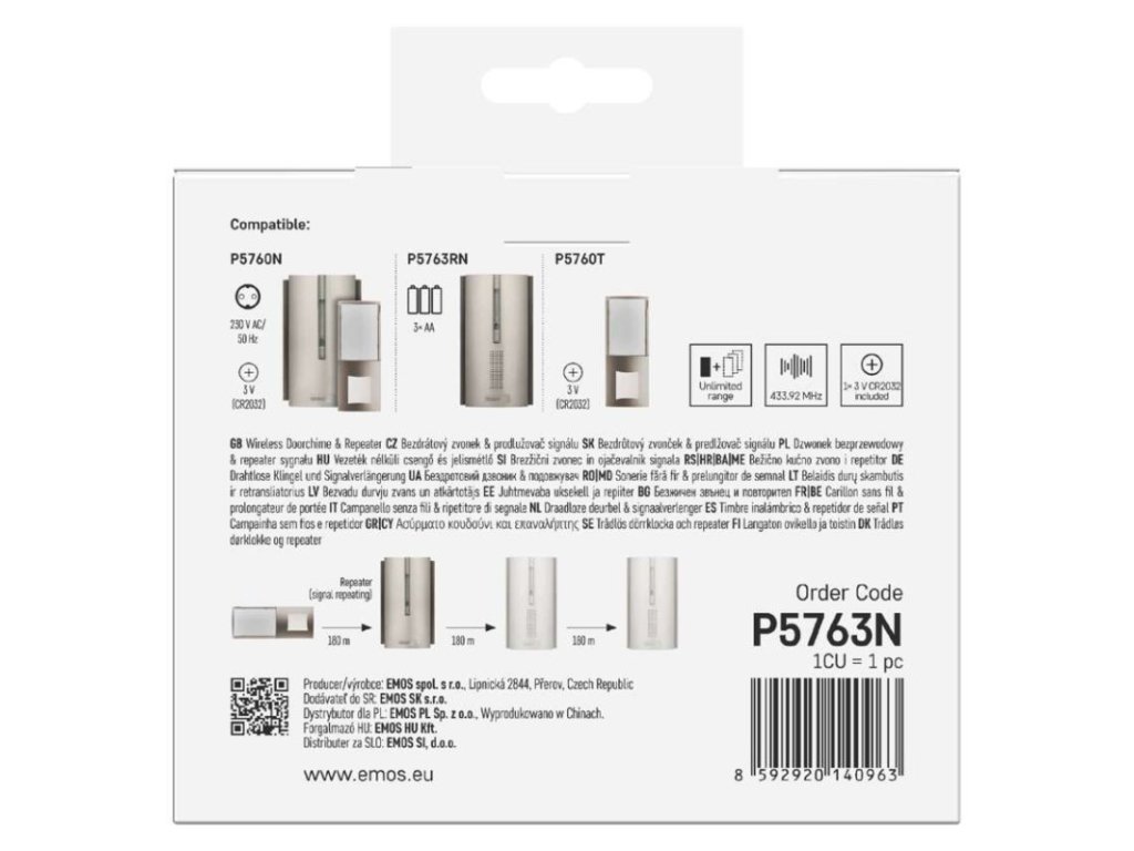 Domovní bezdrátový zvonek P5763N na 3× AA, s možností prodloužení signálu