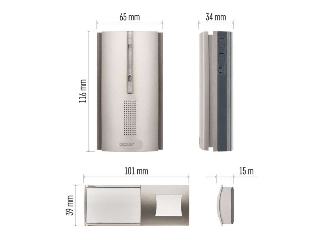 barva: stříbrná|další funkce: –|dosah tlačítka: 180 m|hlasová komunikace: ne|instalační materiál: –|jazyky aplikace: –|kompatibilita: –|maximální hlasitost zvonění: 85 dB|možnost přidat další tlačítko: ano, max. 8|napájení hlavní jednotky: 3× 1,5 V AA (nejsou součástí balení)|napájení tlačítka: 1× 3 V CR2032 (součástí balení)|notifikace do mobilní aplikace: ne|optická signalizace na tlačítku: ano|optická signalizace na zvonku: ano|ovládání hlasovými asistenty: ne|počet melodií: 16|počet přijímačů v balení: 1 ks|počet tlačítek v balení: 1 ks|podporované OS: –|přenosová frekvence: 433 MHz|přídavné (náhradní) tlačítko: P5760T|prodejní obal: 1 ks, blistr|protokol: –|řada: –|regulace hlasitosti: ano, 5 úrovní|rozměr tlačítka: 15 × 101 × 39 mm|rozměr zvonku: 34 × 65 × 116 mm|speciální funkce: funkce repeater – umožňuje prodloužit dosah tlačítka o několik stovek metrů navíc.|voděodolné tlačítko: IP44|způsob párování: automatické párování–self-learning|způsob přenosu: bezdrátový zvonekDoplňkové parametry