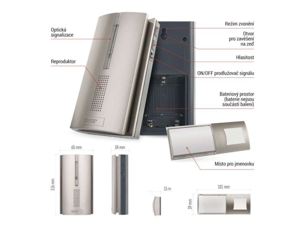 | Rozměr zvonku: | 34 × 65 × 116 mm |