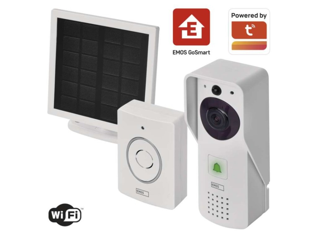 antivandal provedení kamerové jednotky: ne|automatické ukládání snímků: ano|barva: bílá|další funkce: –|detekce pohybu: ano|doporučená kabeláž: bez kabeláže|Funkce WebRTC: ano|hlasová komunikace: obousměrná|IR CUT: ano|jazyky aplikace: EN, CZ, SK, PL, DE, HU, SI, FR, + 60 dalších jazyků|kompatibilita: EMOS GoSmart, TUYA, LIDL, Smartlife, Otevřený systém|krytí kamerové jednotky: IP44|maximální dosvit nočního vidění: 1 metr|maximální úhel záběru kamery: 110°|montáž: na stěnu|možnost připojení přídavných kamer: ne|napájení kamerové jednotky: 2×18650 baterie 2 200 mAh + solární panel + Adaptér DC 5 V/1 A (součást balení)|napájení vnitřního zvonku: 3× AA (LR6) 1,5 V DC (není součástí balení)|noční vidění: ano|notifikace do mobilní aplikace: ano|obsah balení: 1× dveřní kamerová jednotka, 2× baterie Li-Ion 18650, 1× dešťová clona, 1× solární panel, 1× propojovací kabel, 1× bezdrátový zvonek, 1× instalační materiál, 1× manuál|ochrana proti odcizení: ano|ovládání hlasovými asistenty: ano (Amazon Alexa, Google Assistant)|ovládání pojezdu brány: ne|ovládání zámků: ano|počet melodií vnitřního zvonku: 25|počet tlačítek kamerové jednotky: 1|podporované OS: Android, iOS|přenosová frekvence: 2,4 GHz WIFI|přídávný vnitřní zvonek: ano|prodejní obal: 1 ks, krabice|protokol: Wi-Fi|regulace hlasitosti: ano|rozlišení kamery: 1 920 × 1 080|rozměr kamerové jednotky: 149 × 63 × 46 mm|siréna: ano|snímací prvek kamery: 2,69 mm JX-F37|typ produktu: videozvonek|ukládání na cloud: ano|ukládání na SD kartu: ano|záruční doba: 2 roky|zdroj součástí balení: anoDoplňkové parametry