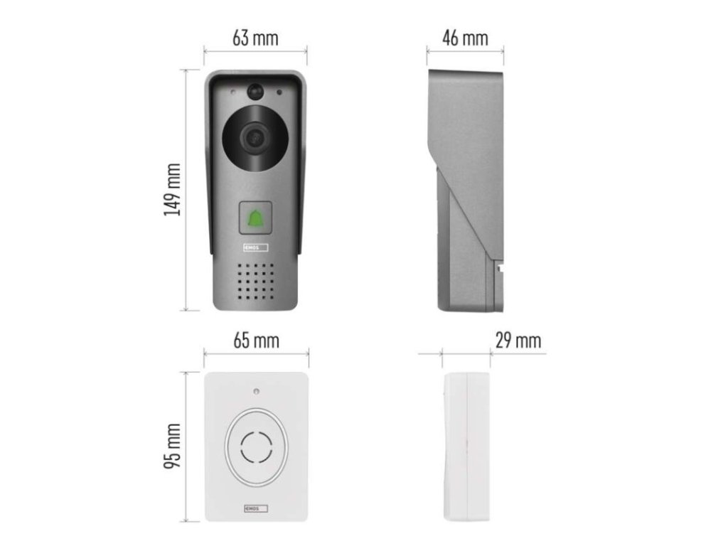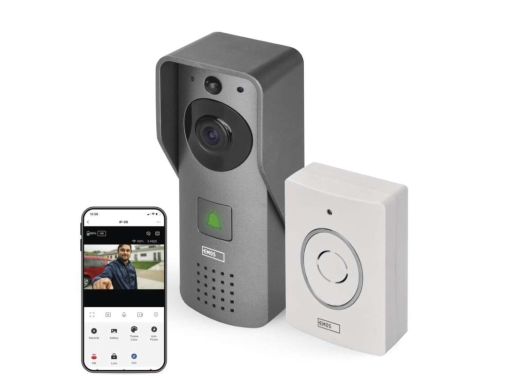 antivandal provedení kamerové jednotky: ne|automatické ukládání snímků: ano|barva: šedá|další funkce: –|detekce pohybu: ano|doporučená kabeláž: bez kabeláže|Funkce WebRTC: ano|hlasová komunikace: obousměrná|IR CUT: ano|jazyky aplikace: EN, CZ, SK, PL, DE, HU, SI, FR, + 60 dalších jazyků|kompatibilita: EMOS GoSmart, TUYA, LIDL, Smartlife, Otevřený systém|krytí kamerové jednotky: IP44|maximální dosvit nočního vidění: 1 metr|maximální úhel záběru kamery: 110°|montáž: na stěnu + na postavení|možnost připojení přídavných kamer: ne|napájení kamerové jednotky: napájeci zdroj DC 12 V (součástí balení)|napájení vnitřního zvonku: 3× AA (LR6) 1,5 V DC (není součástí balení)|noční vidění: ano|notifikace do mobilní aplikace: ano|obsah balení: 1× dveřní kamerová jednotka, 1× dešťová clona, 1× bezdrátový zvonek, 1× napájecí zdroj, 1× propojovací kabel, 1× instalační materiál, 1× manuál|ochrana proti odcizení: ano|ovládání hlasovými asistenty: ano (Amazon Alexa, Google Assistant)|ovládání pojezdu brány: ne|ovládání zámků: ano|počet melodií vnitřního zvonku: 25|počet tlačítek kamerové jednotky: 1|podporované OS: Android, iOS|přenosová frekvence: 2,4 GHz WIFI|přídávný vnitřní zvonek: ano|prodejní obal: 1 ks, krabice|protokol: Wi-Fi|regulace hlasitosti: ano|rozlišení kamery: 1 920 × 1 080|rozměr kamerové jednotky: 149 × 63 × 46 mm|siréna: ano|snímací prvek kamery: 2,69 mm JX-F37|typ produktu: videozvonek|ukládání na cloud: ano|ukládání na SD kartu: ano|záruční doba: 2 roky|zdroj součástí balení: anoDoplňkové parametry