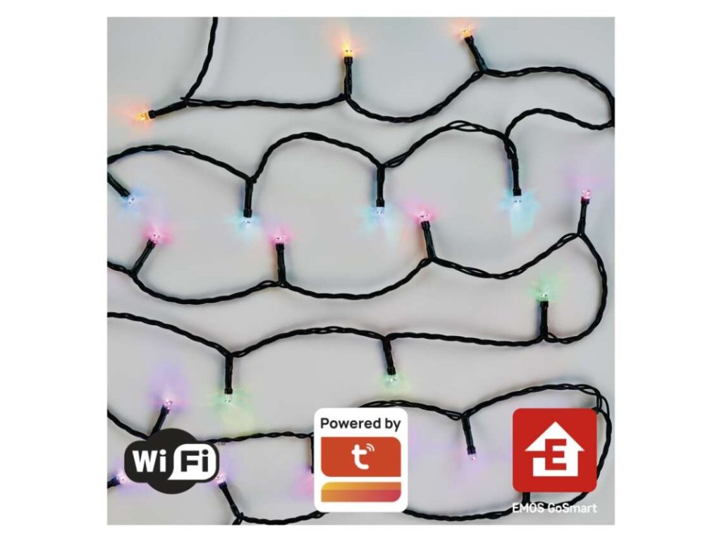 GoSmart LED vánoční řetěz, 12 m, venkovní i vnitřní, RGB, programy, časovač, WiFi