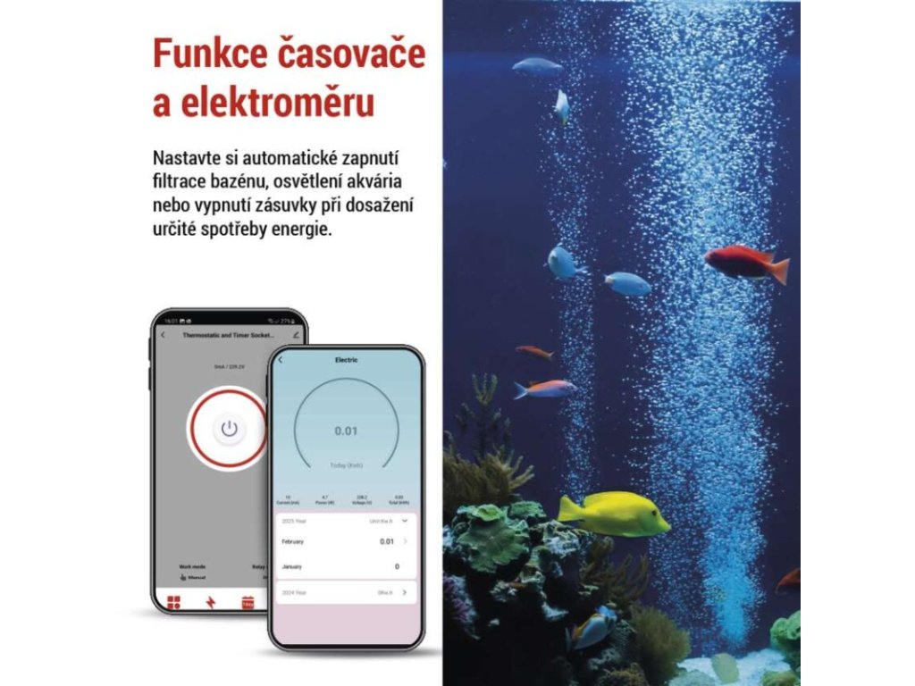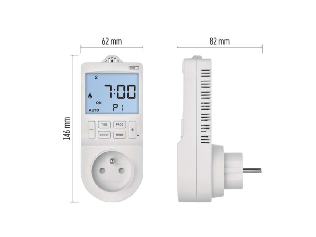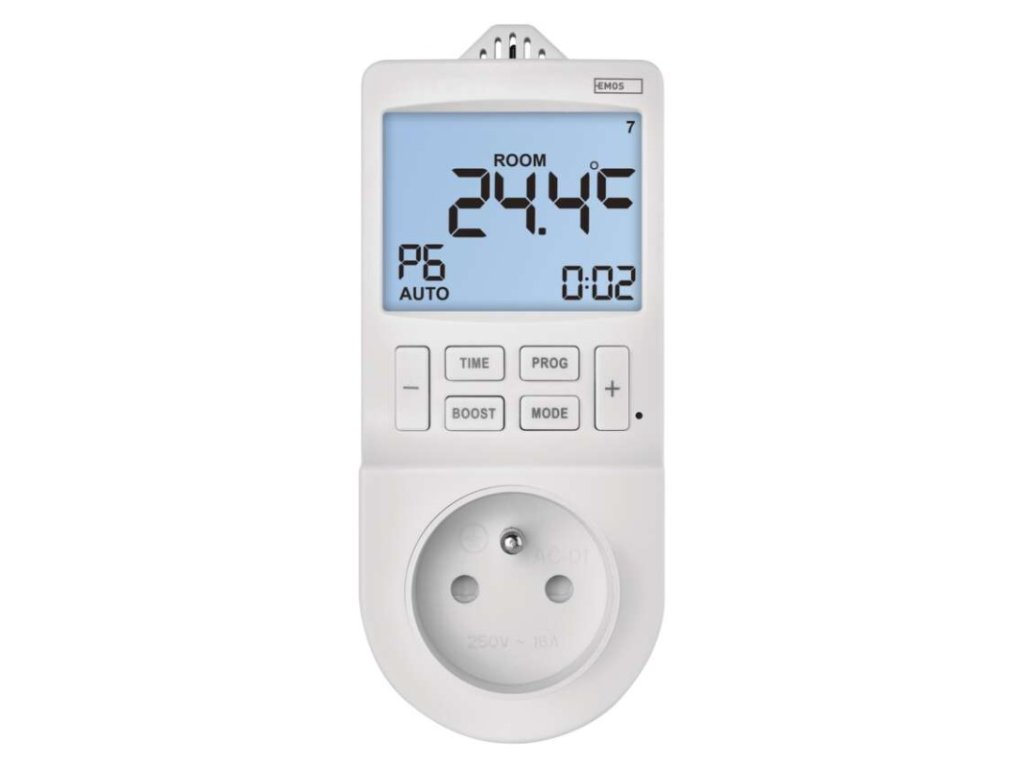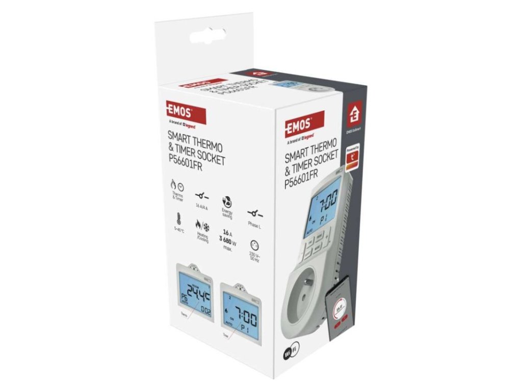 barva: bílá|další funkce: časovač; měřič spotřeby el.energie|dětské clonky: ano|druh: digitální|druh regulace: vytápěcí a chladící systém|energetická třída: –|funkce odpočítávání countdown: ne|funkce ON/OFF: ano|funkce změny letní/zimní čas: ano|jazyky aplikace: EN, CZ, SK, PL, DE, HU, SI, FR, + 60 dalších jazyků|kalibrace teploty: ano|kompatibilita: EMOS GoSmart, TUYA, LIDL, Smartlife, Otevřený systém|krytí: IP30|max. zátěž: 3 680 W|měření teploty: 0 °C až 45 °C, rozlišení 0,1 °C|minimální doba sepnutí: 1 minuta|možnost ručního zapnutí: ano|napětí/proud: 230 V~/16 A max.|nastavení teploty: 5 °C až 40 °C, rozlišení 0,5 °C|nastavitelný rozptyl teploty: 0,2 °C až 2 °C, po 0,1 °C|notifikace do mobilní aplikace: ano|ochrana proti zamrznutí: ne|ovládání hlasovými asistenty: ano (Amazon Alexa, Google Assistant)|počet programů pro časovač: 24|počet programů pro termostat: uživatelsky nastavitelná teplota (6× za den)|počet spínání za den pro časovač: 24|podporované OS: Android, iOS|podsvícený displej: ano|prodejní obal: 1 ks, krabička|protokol: Wi-Fi|řada: GoSmart|rozměr: 82 × 62 × 146 mm|součást balení: –|spíná: fázový vodič|spínaná zátěž: 16 A odporově, 4 A induktivně|spínání: 230 V AC nebo beznapěťové|typ nastavení teploty: 6 teplotních změn denně|typ ovládání: programovatelný elektronický pokojový termostat, možnost ovládaní přes mobil (iOS, Android)|typ termostatu: zásuvkový|venkovní použití: ne|záložní akumulátor: ne|záruční doba: 2 rokyDoplňkové parametry