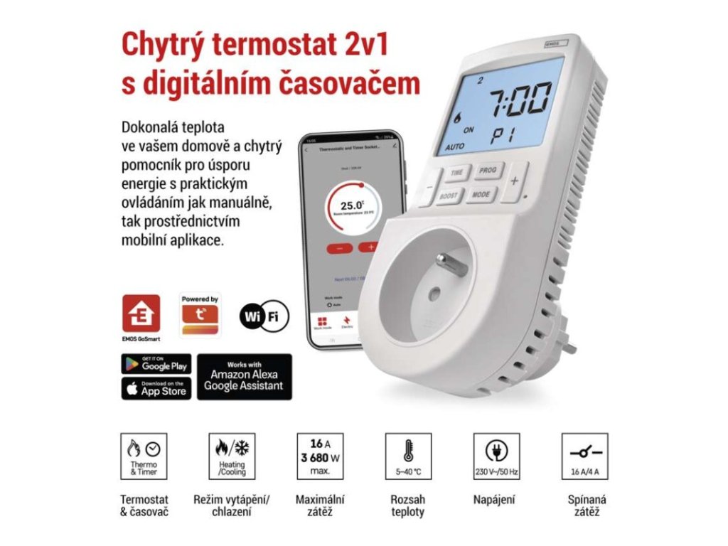GoSmart Termostat do zásuvky s funkcí digitálního časovače 2v1 s WiFi