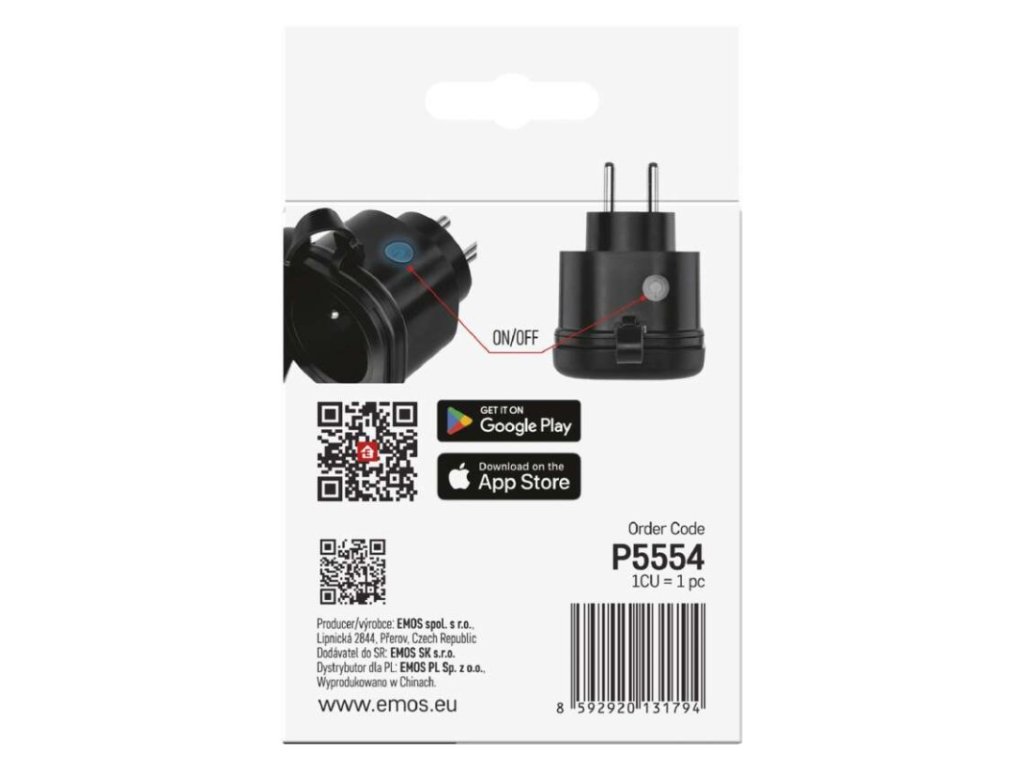 aktualizace firmware: ano|aktuální čas východu a západu slunce: ne|alarm info: ne|další funkce: wattmetr, časovač, countdown|dětské clonky: ano|funkce odpočítávání countdown: ano|kombinace povelů: neuvádí se|kompatibilita: EMOS GoSmart, TUYA, LIDL, Smartlife, Otevřený systém|max. počet zásuvek na Wi-Fi síť: –|max. zátěž: 3 680 W|minimální doba sepnutí: 1 minuta|možnost ručního zapnutí: ano|napětí/proud: 230 V~/16 A max.|nastavení maximálního času zapnutí: –|notifikace do mobilní aplikace: ano|ovládání hlasovými asistenty: ano (Amazon Alexa, Google Assistant)|ovládání přes platformu Android: ano|ovládání přes platformu iOS: ano|počet programů: 30|počet spínání za den: 30|podporované OS: Android, iOS|pojmenování zařízení: ano|přenosová frekvence: 2,4 GHz|prodejní obal: 1 ks, krabice|produkt: ZigBee zásuvka|protokol: Zigbee 3.0|rozměr: 55 × 74 × 55 mm|skupinové ovládání: ano|spíná: fázový vodič|venkovní použití: ano|volba ikony nebo fotky pro zařízení: ano|Wi-Fi router: –Doplňkové parametry
