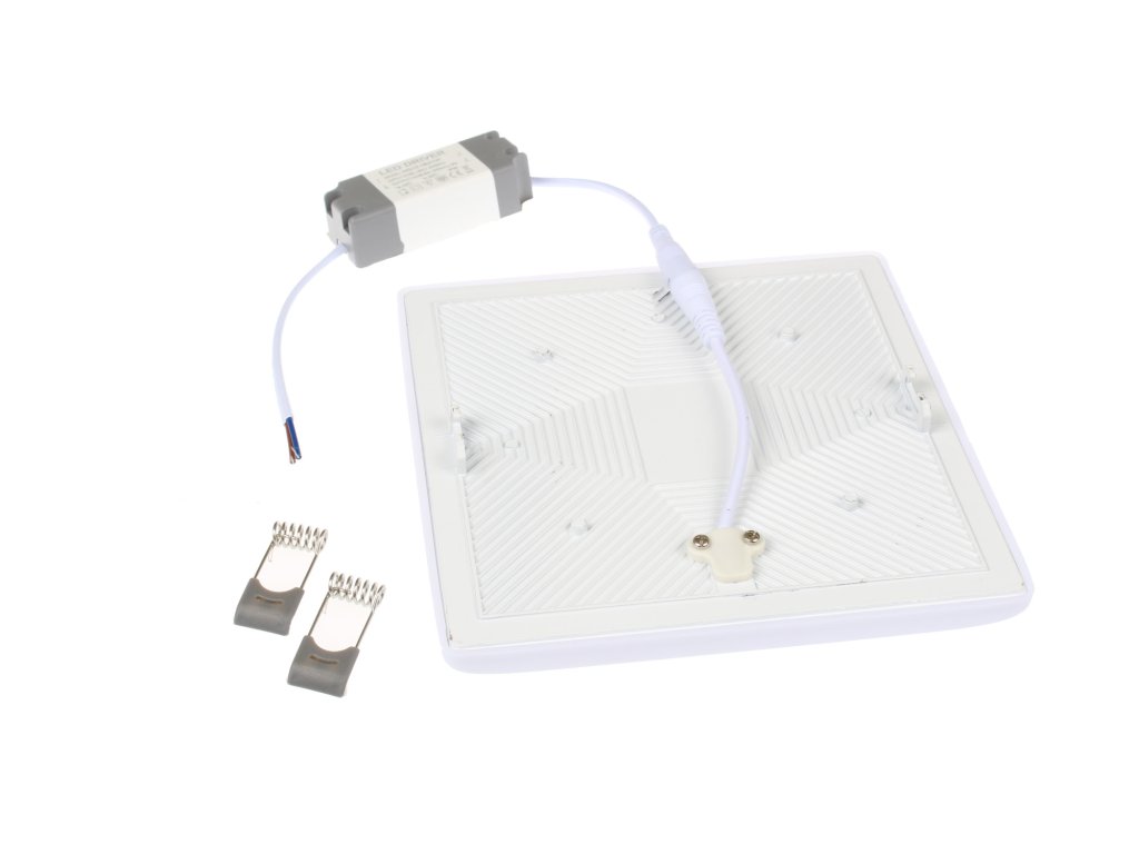 Čtvercový 24W LED panel. Tento model LED panelu je lehce vystouplý, kde celá tato část svítí rovnoměrně a nejsou vidět jednotlivé body diod. Součástí balení je nestmívatelný zdroj pro napájení panelu a sada 2 pružin pro instalaci do podhledu. Stmívat panely lze těmito způsoby: Stmívání pomocí triakových stmívačů. Je nutné objednat tento stmívatelný zdroj, který vyměníte za nestmívatelný původní zdroj. Po výměně za tento stmívatelný zdroj lze pak panely stmívat elektronicky triakovým stmívačem z naší nabídky, možno použít např. jeden z těchto typů: 1/ ACT240W 2/ ACT480W 3/ KNT240W Stmívání pomocí protokolu DALI. Je nutné objednat tento stmívatelný zdroj, který vyměníte za nestmívatelný původní zdroj. Poté zakoupíte AC TRIAK DALI stmívač, který umožňuje pomocí protokolu DALI stmívat stmívatelné LED osvětlení na 230V. Pokud je potřeba použít LED panel jako nouzové svítidlo, je možné dokoupit nouzový modul LP624W. Specifikace LED panelu Barva rámečku Bílá Barevná varianta Teplá bílá Denní bílá Studená bílá Teplota 3000K 4500K 6500K Světelný tok 2320lm 2370lm 2400lm CRI >80 Vstupní napětí Externí LED driver 230V* (Výstup zdroje: 45-84 VDC, 300mA) Příkon 24W Úhel svitu 180° LED čip Epistar SMD 2835 Provozní teplota -15°C až max. 60°C Rozměry 175×175×20mm Krytí IP40 Životnost 30 000h Materiál Stříkaný hliník, difusor plast Stmívatelné Ne, po výměně zdroje ano *je součástí svítidla Co je teplota světla a jak ji správně vybrat? To se dozvíte zde.Doplňkové parametry