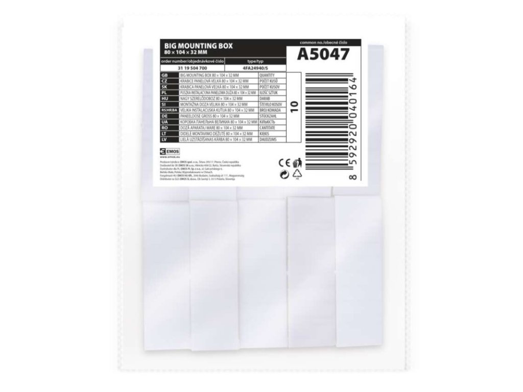 prodejní obal: 10 ks, volné|produkt: krabice přístrojová na povrch|rozměr: 80 × 104 × 32 mm|určeno pro: modely řady Classic, Swing, StandardDoplňkové parametry