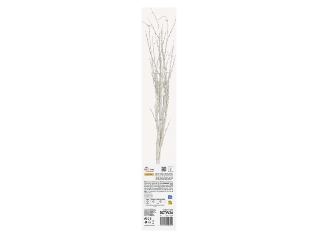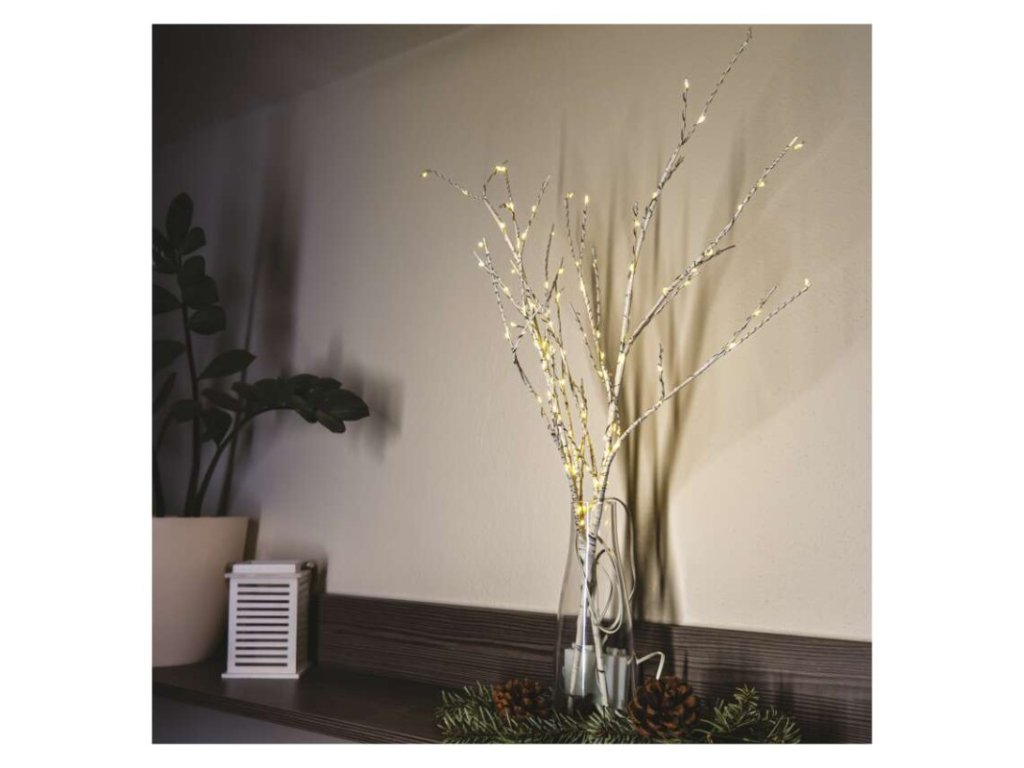 barva drátu: bílá|barva světla: teplá bílá|časovač: ano|dálkový ovladač: ne|délka přívodu: 0,5 m|krytí: IP44|materiál: plast|počet LED: 100|použití: venkovní i vnitřní|příkon: 1,5 W|prodejní obal: 1 ks, krabice|produkt: větve|rozměr: 60 cm|typ napájení: baterie 3× AA (není součástí balení)|vstupní napětí: –|výstupní napětí: 4,5 V DC|záruční doba: 2 roky|zdroj svícení: LED|životnost: 10 000 hodinDoplňkové parametry