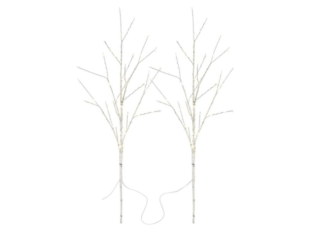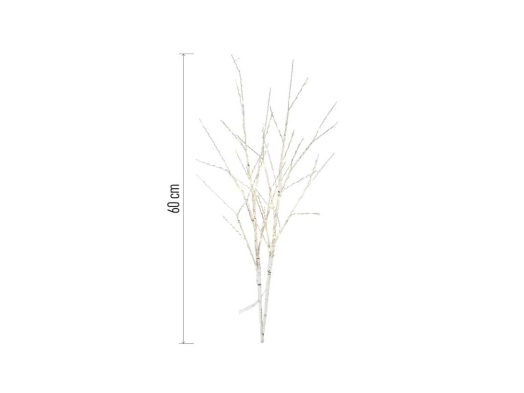 LED dekorace – 2x březová větvička, 60 cm, 3x AA, venkovní i vnitřní, teplá bílá, časovač