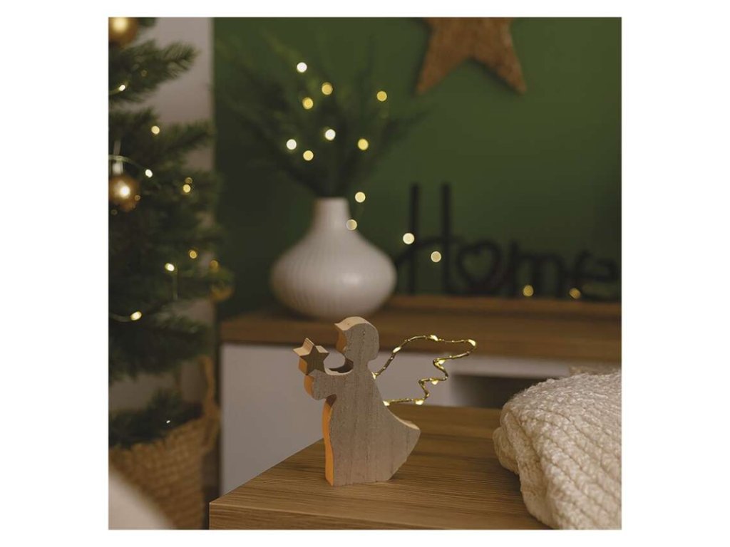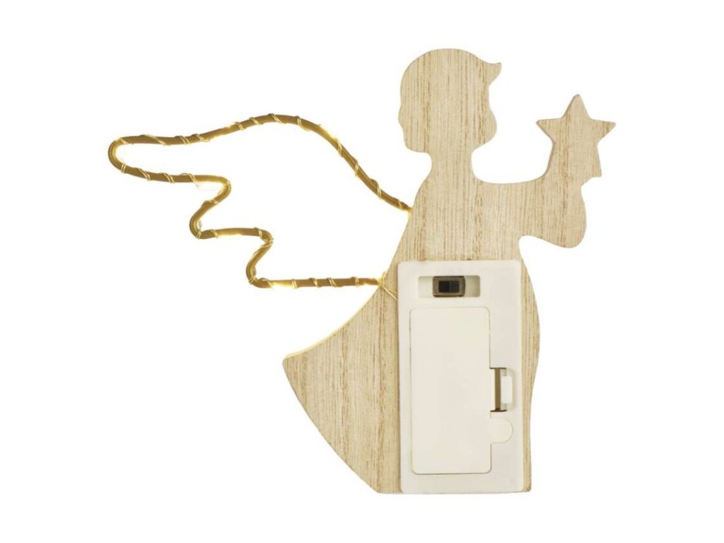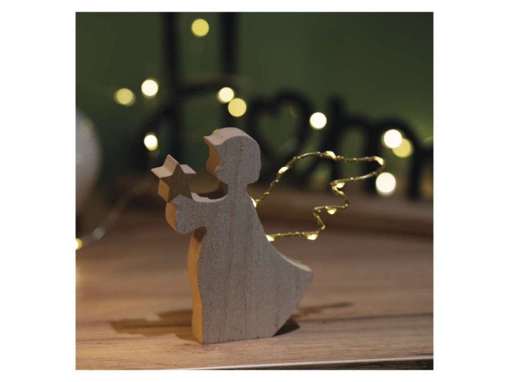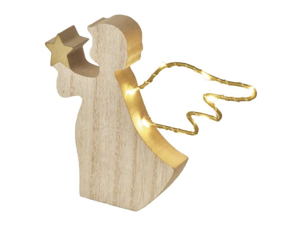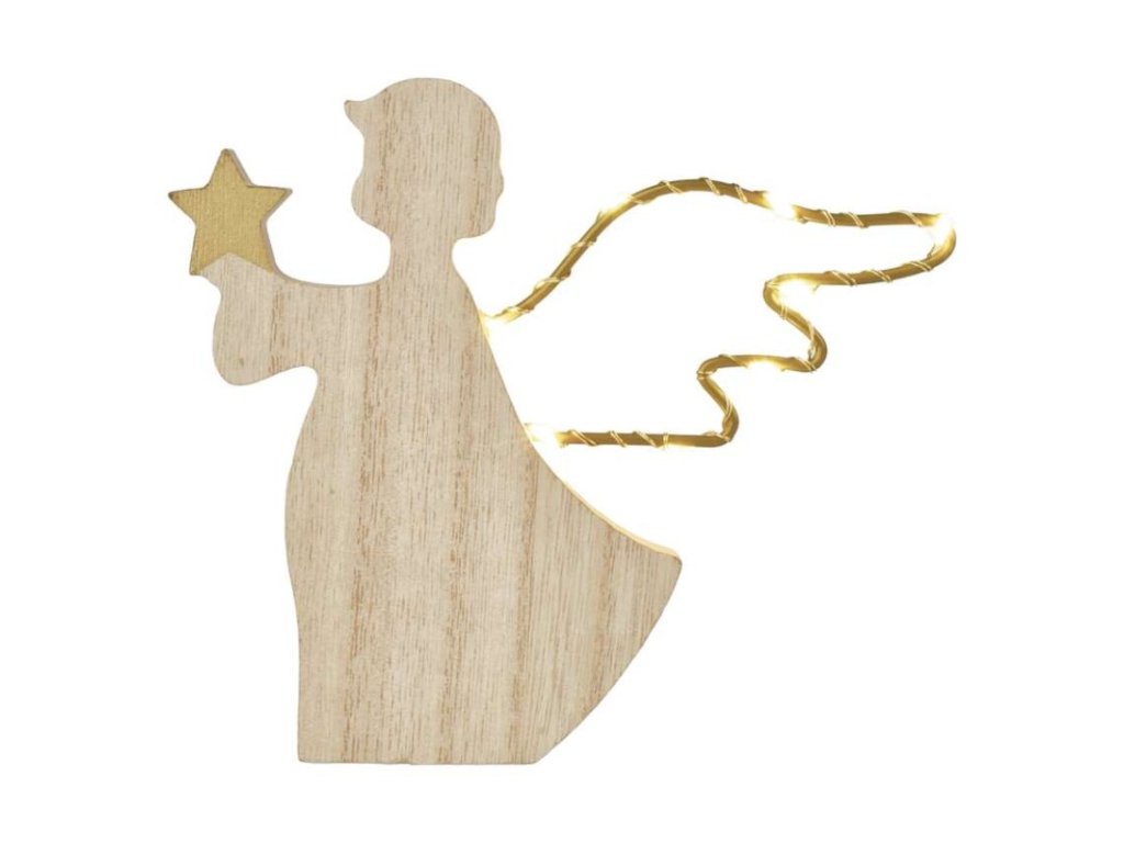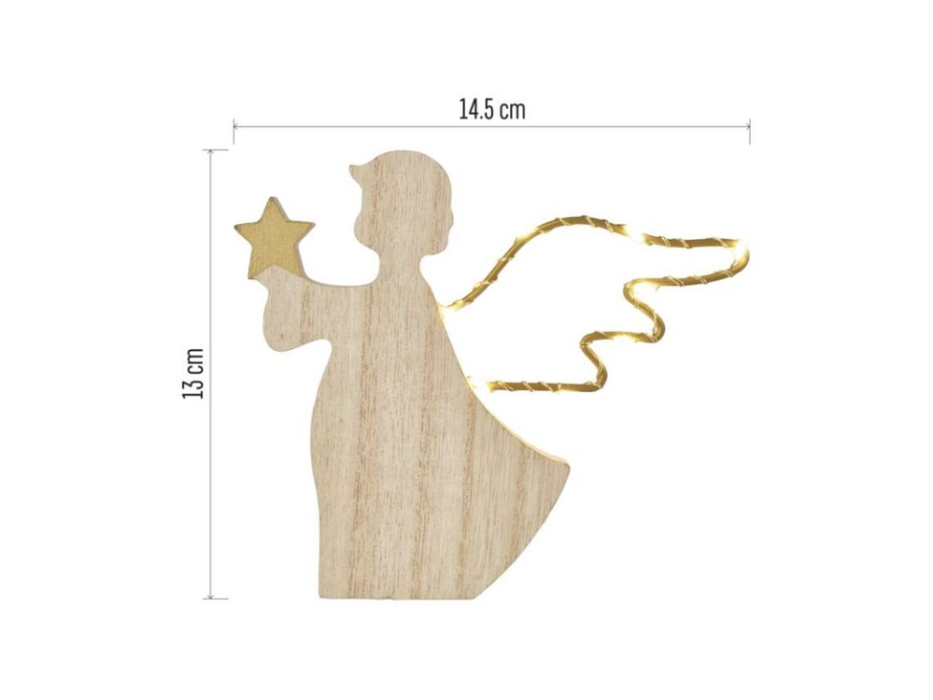 LED dekorace dřevěná – anděl, 13 cm, 2x AAA, vnitřní, teplá bílá, časovač