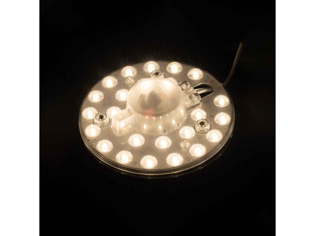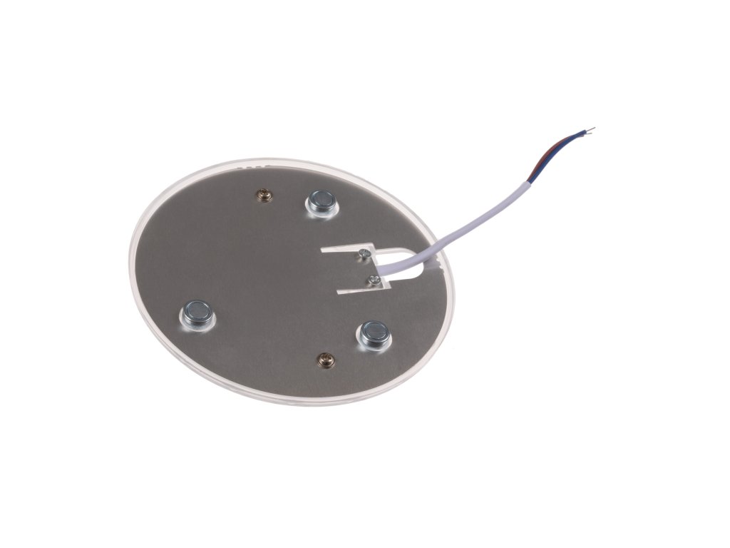 Magnetický LED modul je určený pro modernizaci stropních svítidel. Rychlá a snadná instalace spořívá v odstranění starých světelných zdrojů (například patic E27) a uchycením na kovový povrch svítidla třemi magnety, které jsou již integrované na LED modulu. Z bezpečnostních důvodů svěřte montáž odborníkovi. Specifikace LED reflektoru Barevná varianta Teplá bílá Denní bílá Studená bílá Teplota 3000K 4500K 6000K Světelný tok 1100lm 1180lm 1200lm CRI >80 Vstupní napětí 230V AC Příkon 10W Úhel svitu 160° Provozní teplota -15°C až max. 60°C Životnost > 25 000 hodin Rozměry 128*25 mm (průměr/výška) Uchycení Magnetické Délka kabelu 7 cm Váha 0,075kg Krytí IP20 Stmívatelná Ne Co je teplota světla a jak ji správně vybrat? To se dozvíte zde.Doplňkové parametry