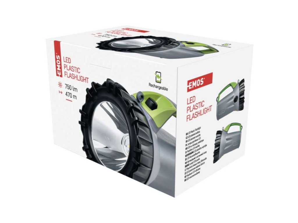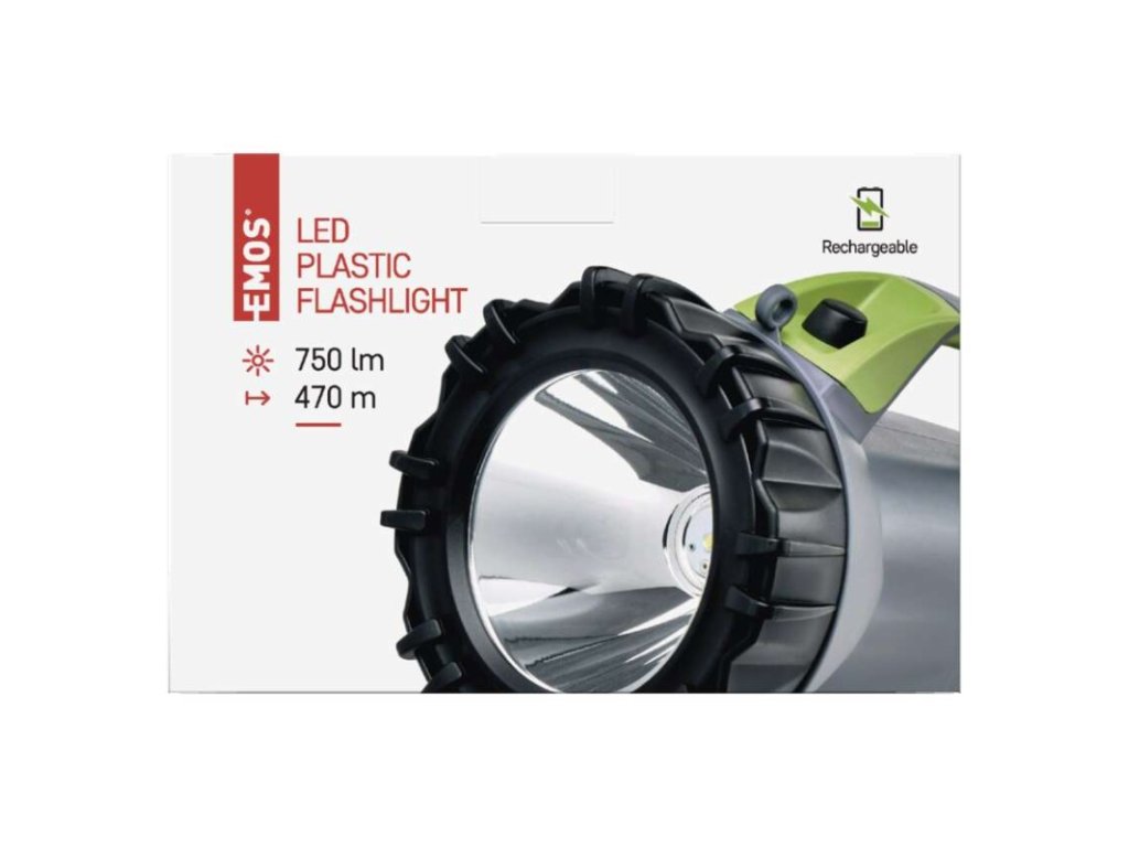 barva: šedo-černo-zelená|baterie součástí balení: ano|doba nabíjení: 6,5 h|doba svícení: 15–30 h|doba svícení detail: LED 50 % – 30 h, LED 100 % – 15 h|dosvit: LED 50 % – 300 m, LED 100 % – 470 m|fokus: ne|hmotnost: 527 g|LED indikace nabíjení: ano|LED indikace stavu akumulátoru: ne|materiál: ABS plast|maximální dosvit: 470 m|maximální světelný tok: 750 lm|nabíjecí: ano|napájení: Li-Ion akupack|nárazuvzdornost: ne|počet režimů svícení: 3|příslušenství: napájecí adaptér, adaptér do automobilu, popruh přes rameno|prodejní obal: 1 ks, krabice|režimy svícení: LED 50 %, LED 100 %, blikání|rozměr: 212 × 150 × 155 mm|speciální funkce: funkce ochrany baterie, funkce powerbank|světelný tok: LED 50 % – 310 lm, LED 100 % – 750 lm|typ baterie: 4 000 mAh/3,7 V|typ napájecího konektoru: micro USB B|voděodolnost: ne|vybavení: neuvádí se|záruční doba: 2 roky|zdroj světla: OSRAM LED|značka: EMOSDoplňkové parametry