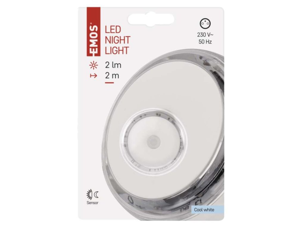 automatické zapnutí/vypnutí: ano|barva světla: studená bílá|časová prodleva: neuvádí se|fotosenzor: ano|maximální dosvit: 2 m|maximální světelný tok: 2 lm|max. výstup 1× USB: neuvádí se|max. výstup celkem: neuvádí se|napájení: 230 V~/50 Hz, max. 0,5 W|natáčení: ne|ochrana proti přetížení, přepětí a zkratu: neuvádí se|počet USB výstupů: neuvádí se|pohybové čidlo: ne|příkon: 0,5 W max.|prodejní obal: 1 ks, blistr|režim svícení: auto|rozměr: 46 × 67 × 46 mm|vypínač: ne|zdroj světla: LEDDoplňkové parametry