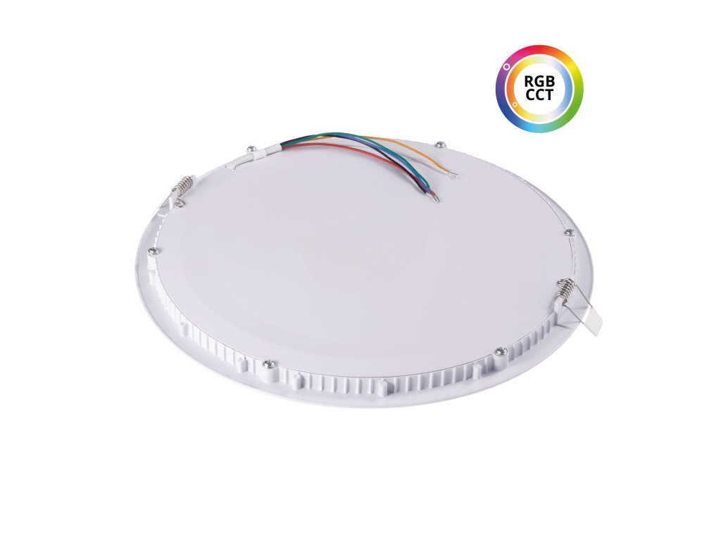 Vestavný kulatý bílý RGBCCT LED panel 24V 36W určený pro instalaci do podhledu. Díky bočnímu nasvětlování nejsou jednotlivé LEDky při rozsvícení viditelné a lze použít i ultratenký design. LED panel díky RGBCCT provedení Vám umožňuje nastavit barvu bílého světla v rozmezí od 2000K do 6000K a můžete nastavit bílé světlo od teplých žlutých odstínů bílé přes denní až po studené bílé světlo. Zároveň lze nastavit také barvy z RGB spektra (červená, zelená, modrá a jejich kombinace). Napětí 24V umožňuje tyto LED panely taktéž instalovat na místa, kde potřebujete nízké napětí. Zároveň 24V napětí je často využíváno v chytrých domácnostech jako je LOXONE či jiné obdobné systémy. 24V LED panely můžete obecně ovládat stejně jako 24V RGBCCT LED pásky a využívat stejné PWM RGBCCT LED ovladače jako pro RGBCCT LED pásky. Obecně lze tedy využít klasické PWM RGBCCT LED ovladače, Tuya a Zigbee ovládaní, DALI, DMX, 0/1-10V a další. Můžete se například podívat na RGBCCT ovladače z řady dimLED. Pro napájení můžete použít 24V LED zdroj, kdy samozřejmě můžete zakoupit 1 napájecí zdroj pro více LED panelů. Zdroj ani ovládání není součástí balení a je nutné dokoupit zvlášť. Součástí balení jsou: LED panel pružiny Specifikace LED panelu Barva rámečku Bílá Barva světla RGB+CCT Teplota světla RGB + 2000-6000K Světelný tok 2520lm při zapnutí všech barev Světelný tok CCT 2000lm při 4000K Světelný tok RGB 520lm při zapnutí všech barev CRI >80 Vstupní napětí 24V DC Příkon celkem 36W Příkon CCT 24W Příkon RGB 12W Úhel svitu 170° Provozní teplota -15°C až max. 60°C Rozměry 300x14mm (p/v) Krytí IP20 Životnost 25 000h Materiál Stříkaný kov, difusor plast Stmívatelné AnoDoplňkové parametry