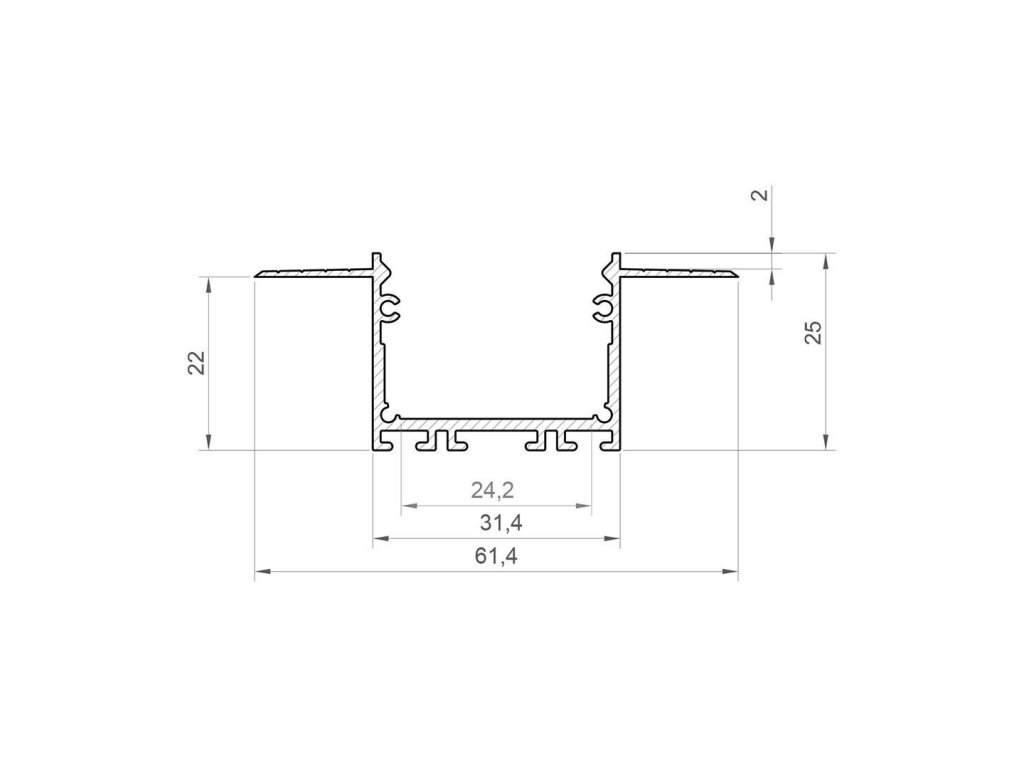 Hliníkový profil (lišta) GK22-7 je určený pro instalaci do sádrokartonu. Profil nabízíme s povrchovou eloxovanou úpravou. Tento profil doporučuje maximálně pro LED pásek o výkonu 40W/m. Do LED profilu lze umístit až 3 LED pásky vedle. Profily se nejvíce používají k montáži do sádrokartonových stropů a stěn v interiéru. LED profil se instaluje mezi sádrokartonové desky a umožňuje vytvářet lineární světla. Profil slouží i jako chladič LED pásku. Související produkty Barva profilu Stříbrná Povrchová úprava Eloxování Difuzory/kryty Kryt C7 Koncovky Koncovka GK22-7 Max. výkon pásku 40W Výhoda tohoto profilu je možnost nacvaknutí plastové krytky (difusoru) přímo z čelní strany profilu. Difusory jsou vyrobeny z kvalitního UV odolného polykarbonátu, který postupem času nežloutne, je měkčený a nepraská. Profil se prodává v délkách 1 metr a 2 metry. Tolerance délky profilu ±1%.Doplňkové parametry