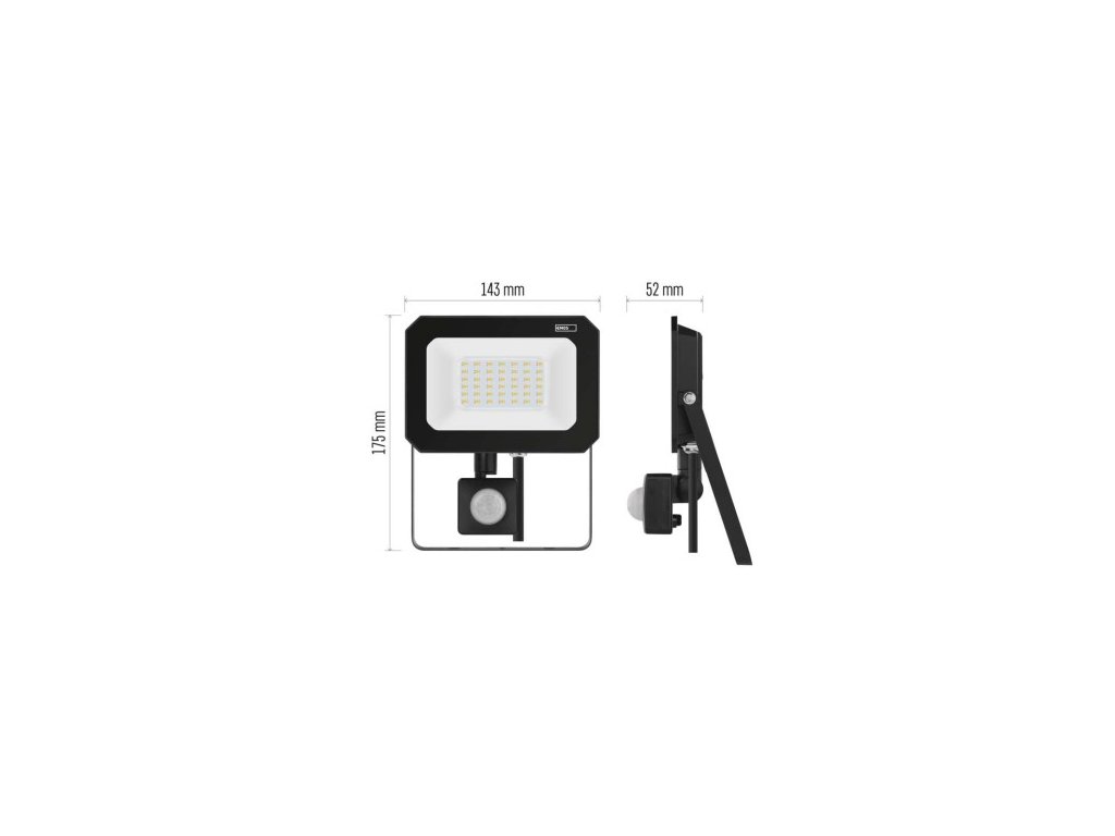 LED reflektor SIMPO s pohybovým čidlem, 30 W, černý, neutrální bílá