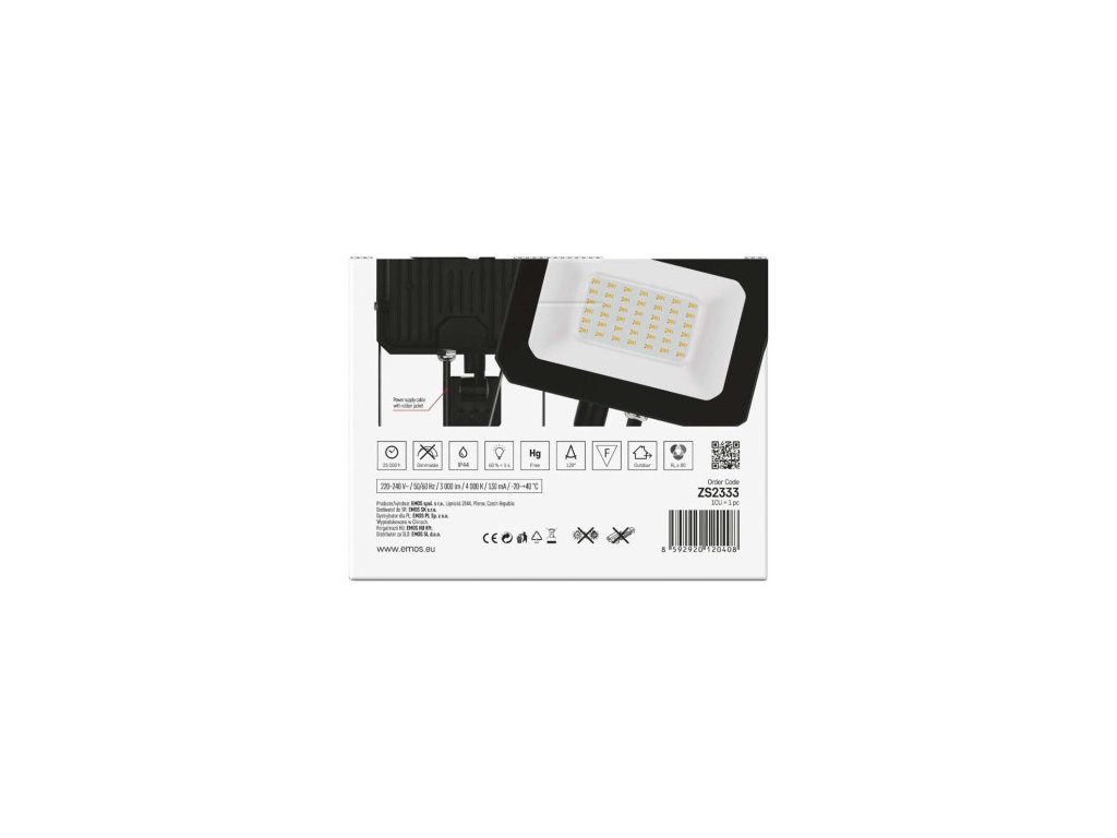 akumulátor: ne|barva: černá|barva světla: neutrální bílá|délka přívodního kabelu: 20 cm|doba svícení na AKU: neuvádí se|dosah PIR senzoru: 8 m|energetická třída použitého světelného zdroje: –|flicker-free: ano|frekvence: 50/60 Hz|index podání barev (CRI): Ra > 80|kategorie: ESSENTIAL|krytí: IP44|materiál difuzoru: sklo|materiál přívodního kabelu: guma|materiál těla: hliník|napájení: ze sítě|napětí: 220–240 V~|PIR senzor: ano|počet průchozích zásuvek: neuvádí se|použití: závěsná montáž|příkon: 30 W|prodejní obal: 1 ks, krabice|proud: 130 mA|řada: SIMPO|rozměr: 143 × 175 × 52 mm|rozsah pracovní teploty: -20 °C až +40 °C|stmívání: ne|stupeň ochrany proti mechanickým nárazům: neuvádí se|světelná účinnost: 100 lm/W|světelný tok: 3 000 lm|teplota chromatičnosti: 4 000 K|typ přívodního kabelu: H05RN-F|typ průchozích zásuvek: neuvádí se|účiník: > 0,9|úhel vyzařování: 120°|záruční doba: 2 roky|zdroj světla: LED|životnost: 25 000 hodin|zkušební žárovka součástí balení: neDoplňkové parametry