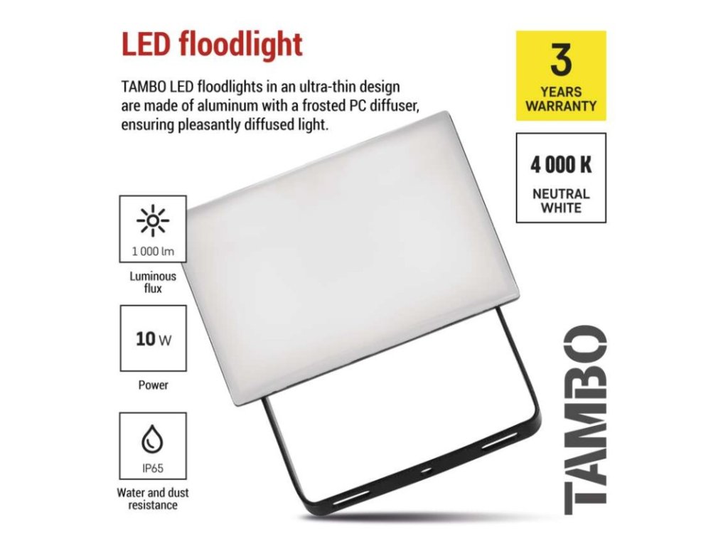 LED reflektor TAMBO, 10 W, 1000 lm, IP65, černý