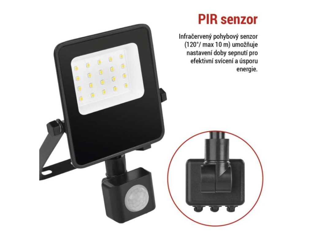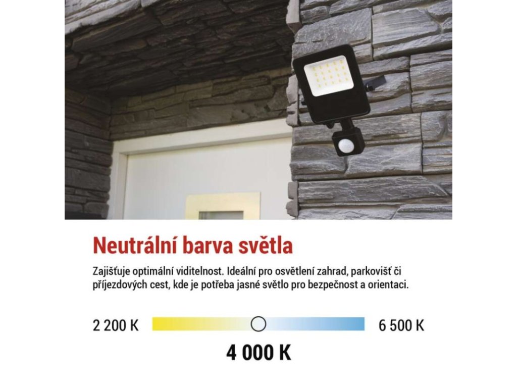 LED reflektor VISIO s pohybovým čidlem, 10 W, černý, neutrální bílá
