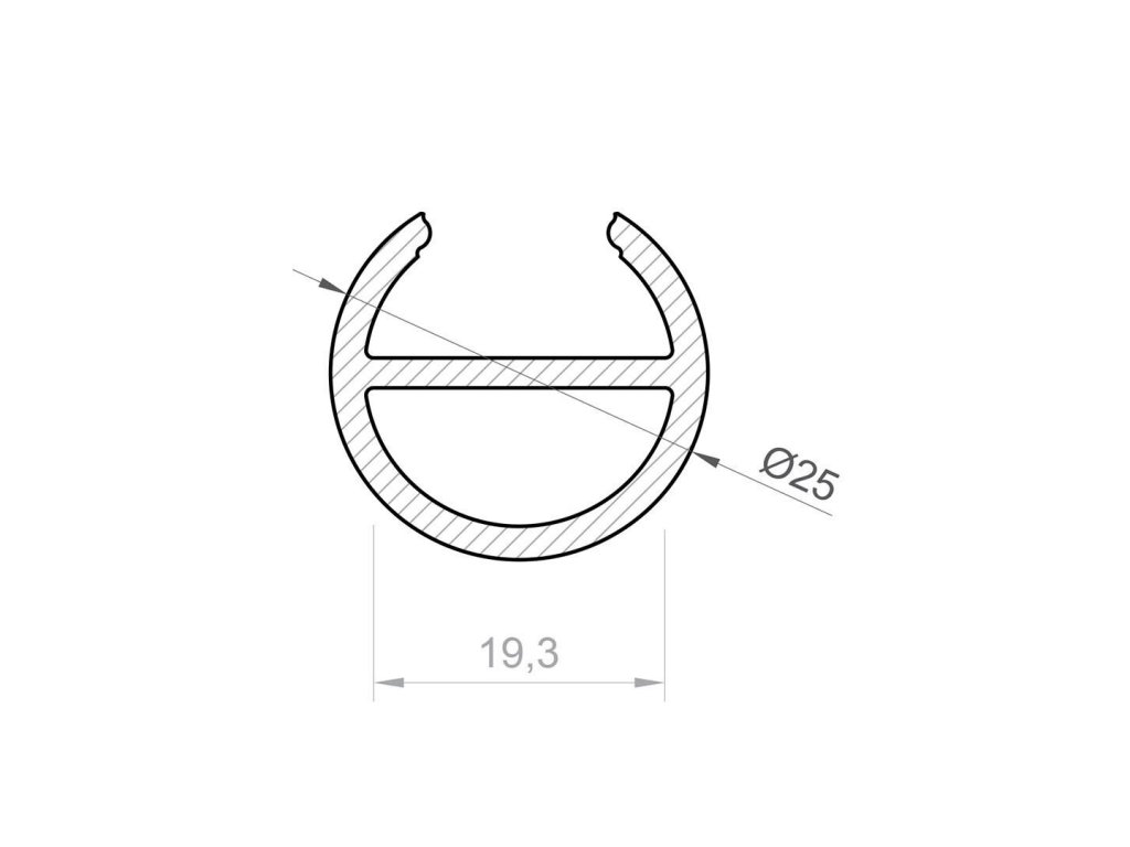 Šatní hliníkový profil (lišta) P19-1, kde lze vložit 1 LED pásek. Profil nabízíme s povrchovou eloxovanou úpravou. Tento profil doporučuje maximálně pro 1 LED pásek o výkonu 24W/m. Profily P19-1 je kruhový profil, který se používá především v osvětlení nábytku jako alternativa klasických šatních tyčí. Související produkty Barva profilu Stříbrná Povrchová úprava Eloxování Difuzory/kryty Kryt C13 Boční úchyt Úchyt P19-1 Max. výkon pásku 24W Výhoda tohoto profilu je možnost nacvaknutí plastové krytky (difusoru) přímo z čelní strany profilu. Difusory jsou vyrobeny z kvalitního UV odolného polykarbonátu, který postupem času nežloutne, je měkčený a nepraská. Profil se prodává v délkách 1 metr a 2 metry. Tolerance délky profilu ±1%.Doplňkové parametry