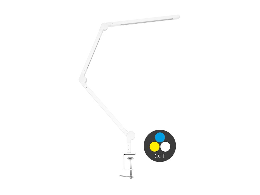 Minimalistická kancelářská lampa SPACE je určená k upevnění na hranu desky pracovního stolu. Využívá vysoce úspornou SMD LED technologii s dlouhou životností. Tělo lampy je otočné ve 3 kloubech a lze tak docílit pohodlného nastavení směru světla. Pomocí ovládacího panelu na zadní části lampičky je možné regulovat jas i požadovanou teplotu chromatičnosti v rozmezí 3000-6000K.Doplňkové parametry