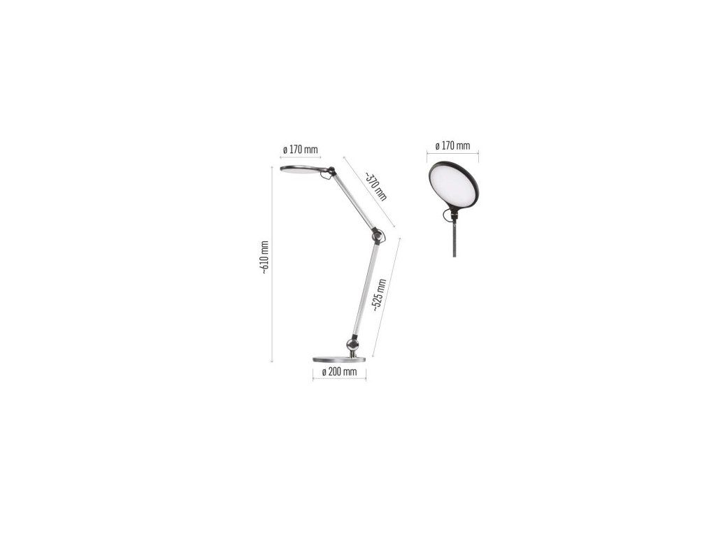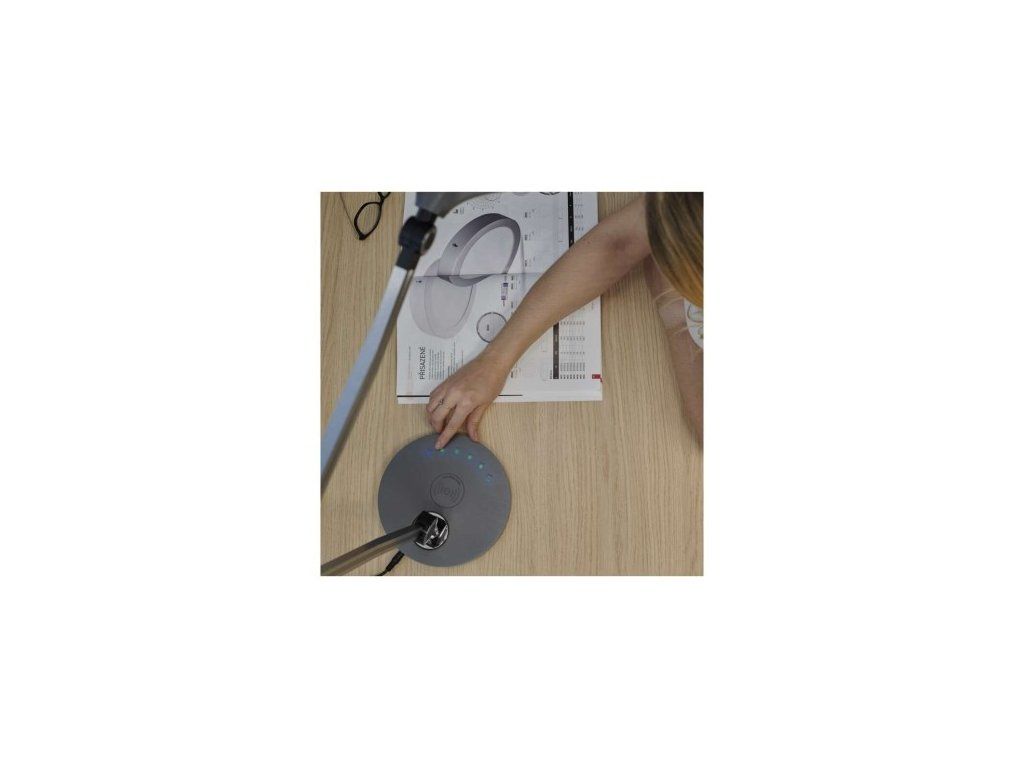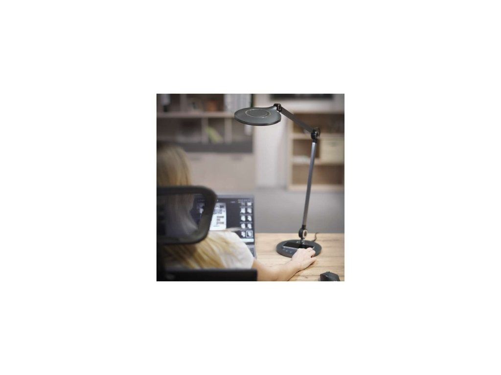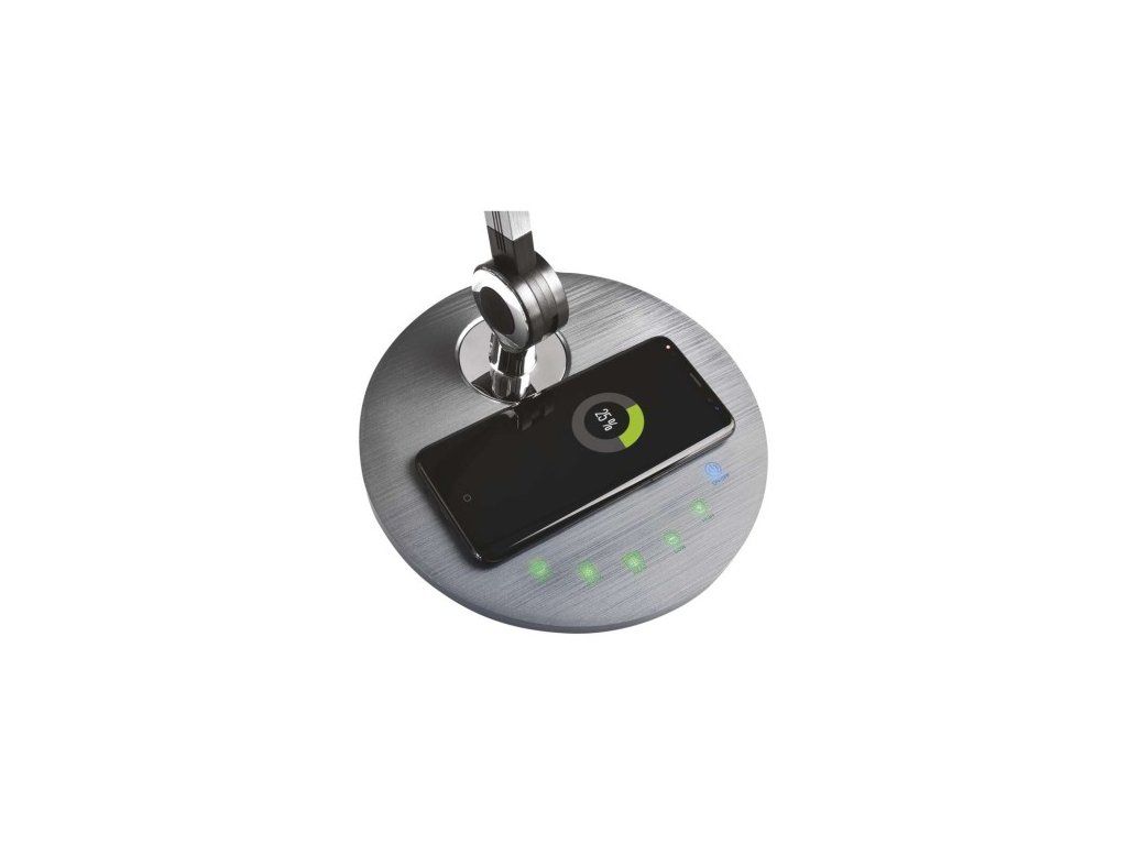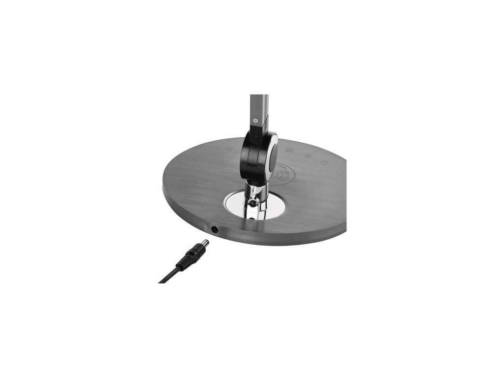 barva: tmavě šedá|barva světla: teplá/neutrální/studená bílá|činitel stárnutí: neuvádí se|čip LED: neuvádí se|délka přívodního kabelu: 1,3 m|energetická třída: E|energetická třída (od 1.9.2021): neuvádí se|index podání barev (CRI): Ra >80|integrovaná nabíjecí baterie: ne|krytí: IP20|materiál: hliník/plast|max. výkon: neuvádí se|napájecí zdroj: 13,5 V/1 500 mA|napájecí zdroj součástí balení: ano|napětí: 220–240 V|obsah rtuti: neuvádí se|patice (uchycení žárovky): neuvádí se|počet LED: neuvádí se|počet spínacích cyklů: neuvádí se|příkon: 9,2 W|prodejní obal: 1 ks, krabice|rozměr: 200 × 550 × 700 mm|rychlost náběhu na 100 %: neuvádí se|stmívání: ano|světelný tok: 640 lm|teplota chromatičnosti: 3 000/4 000/6 500 K|typ napájení: síť|účiník: neuvádí se|USB port: ne + bezdrátové nabíjení|životnost: neuvádí seDoplňkové parametry