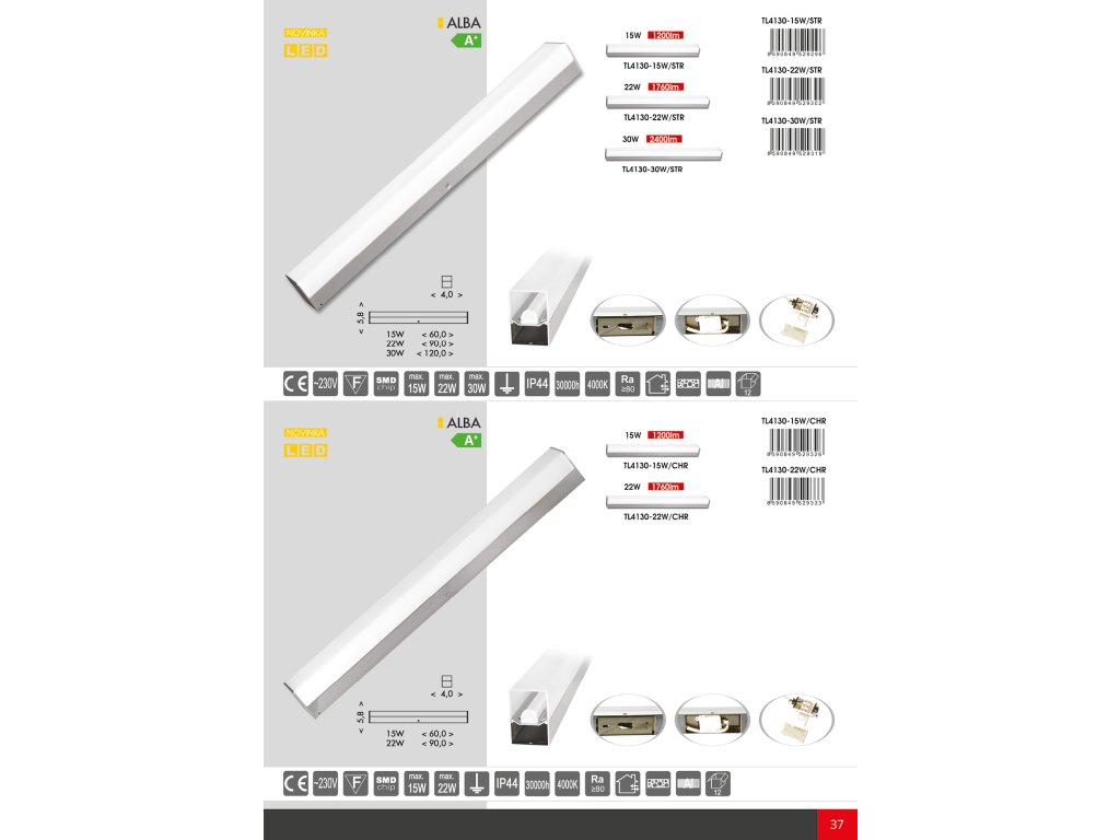 Vysoce úsporné kuchyňské LED svítidlo ALBA s pokročilou SMD technologií je díky vyššímu krytí IP44 vhodné jako koupelnové svítidlo nebo např. pro podsvícení kuchyňské linky, ale i výloh nebo prodejních pultů. Je vyrobeno z hliníku a plastu. Životnost zdroje je zhruba 30 000 hodin. Model nabízíme v několika výkonech a barevných variantách.Doplňkové parametry