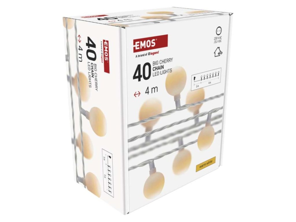 barva drátu: bílá|barva světla: teplá bílá|časovač: ano|dálkový ovladač: ne|délka přívodu: 5 m|funkce: svítí|krytí: IP44|LED mezera: 10 cm|materiál: PVC|možnost propojení: ne|počet LED: 40|použití: venkovní i vnitřní|příkon: 3,6 W|prodejní obal: 1 ks, krabice|produkt: řetěz|pro výšku stromu: 100 cm|rozměr: 4 m|tvar: kulička|typ napájení: síťový adaptér|velikost LED: 25 mm|vstupní napětí: 230 V AC|výstupní napětí: 31 V DC|záruční doba: 2 roky|životnost: 10 000 hodinDoplňkové parametry