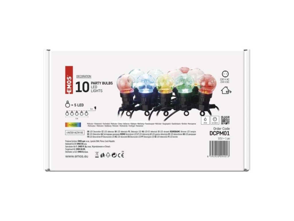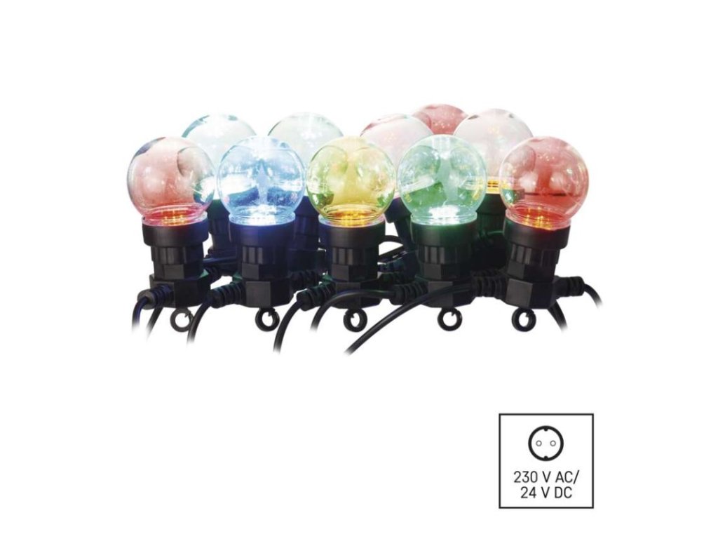 LED světelný řetěz – 10x párty žárovky, 5 m, venkovní i vnitřní, multicolor