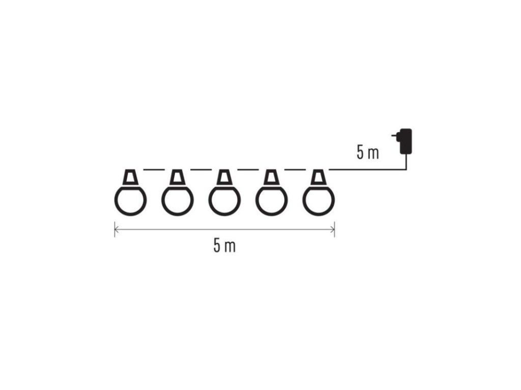 barva drátu: černá|barva světla: teplá bílá|časovač: ne|dálkový ovladač: ne|délka přívodu: 5 m|krytí: IP44|materiál: plast|počet LED: 50|použití: venkovní i vnitřní|příkon: 5 W|prodejní obal: 1 ks, krabice|produkt: girlanda|rozměr: 5 m|typ napájení: síťový adaptér|vstupní napětí: 230 V AC|výstupní napětí: 24 V DC|záruční doba: 2 roky|zdroj svícení: LED|životnost: 10 000 hodinDoplňkové parametry