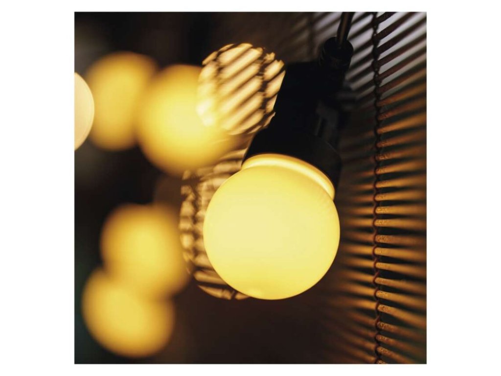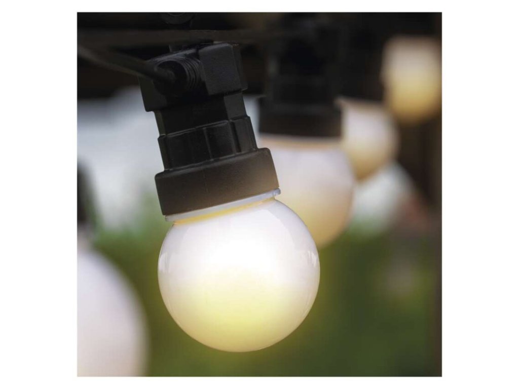 LED světelný řetěz – 10x párty žárovky mléčné, 5 m, venkovní i vnitřní, teplá bílá