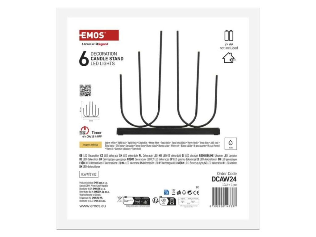 barva drátu: –|barva světla: teplá bílá|časovač: ano|dálkový ovladač: ne|délka přívodu: –|krytí: IP20|materiál: kov|počet LED: 6|použití: vnitřní|příkon: 0,36 W|prodejní obal: 1 ks, krabice|produkt: svícen|rozměr: 38 × 6 × 40,5 cm|typ napájení: baterie 2× AA (není součástí balení)|vstupní napětí: –|výstupní napětí: 3 V DC|záruční doba: 2 roky|zdroj svícení: LED|životnost: 10 000 hodinDoplňkové parametry