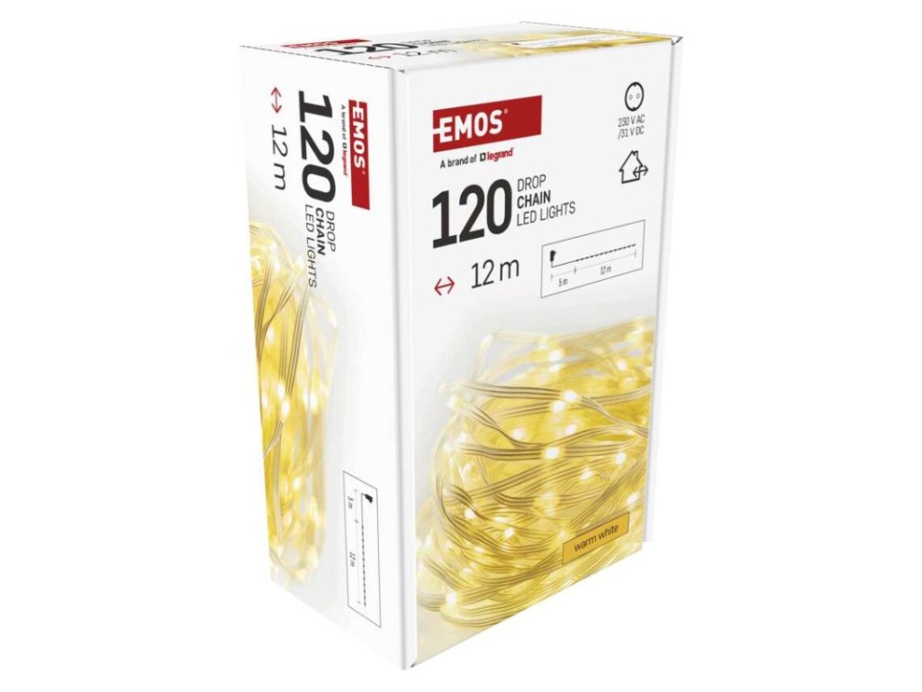 barva drátu: transparentní|barva světla: teplá bílá|časovač: ano|dálkový ovladač: ne|délka přívodu: 5 m|funkce: svítí|krytí: IP44|LED mezera: neuvádí se|materiál: PVC|možnost propojení: ne|počet LED: 120|použití: venkovní i vnitřní|příkon: 3,6 W|prodejní obal: 1 ks, krabice|produkt: řetěz|pro výšku stromu: neuvádí se|rozměr: 12 m|tvar: drop|typ napájení: síťový adaptér|velikost LED: neuvádí se|vstupní napětí: 230 V AC|výstupní napětí: 31 V DC|záruční doba: 2 roky|životnost: 10 000 hodinDoplňkové parametry