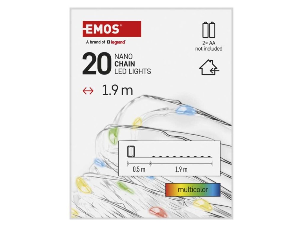 LED vánoční nano řetěz, 1,9 m, 2x AA, vnitřní, multicolor, časovač