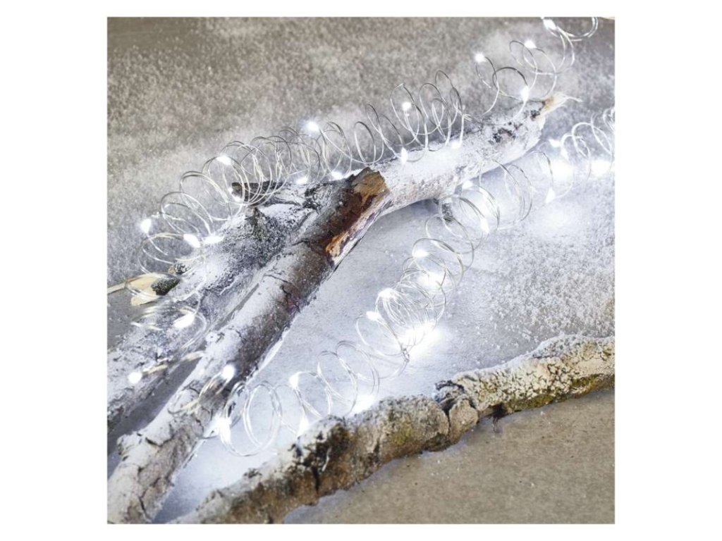 LED vánoční nano řetěz stříbrný, 4 m, venkovní i vnitřní, studená bílá, časovač